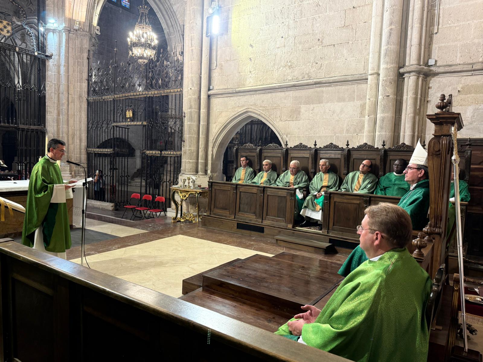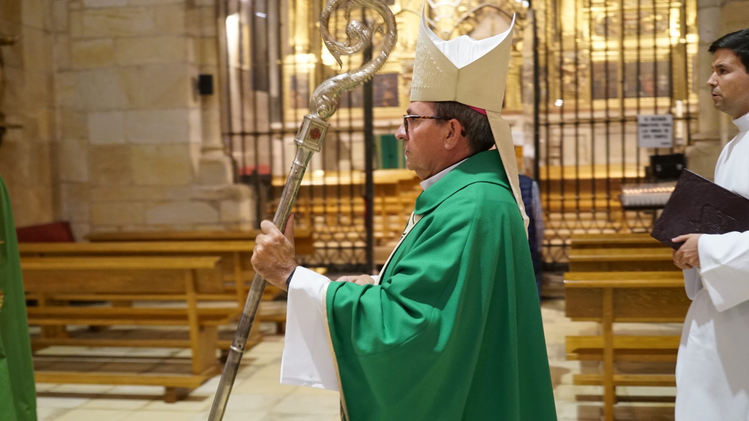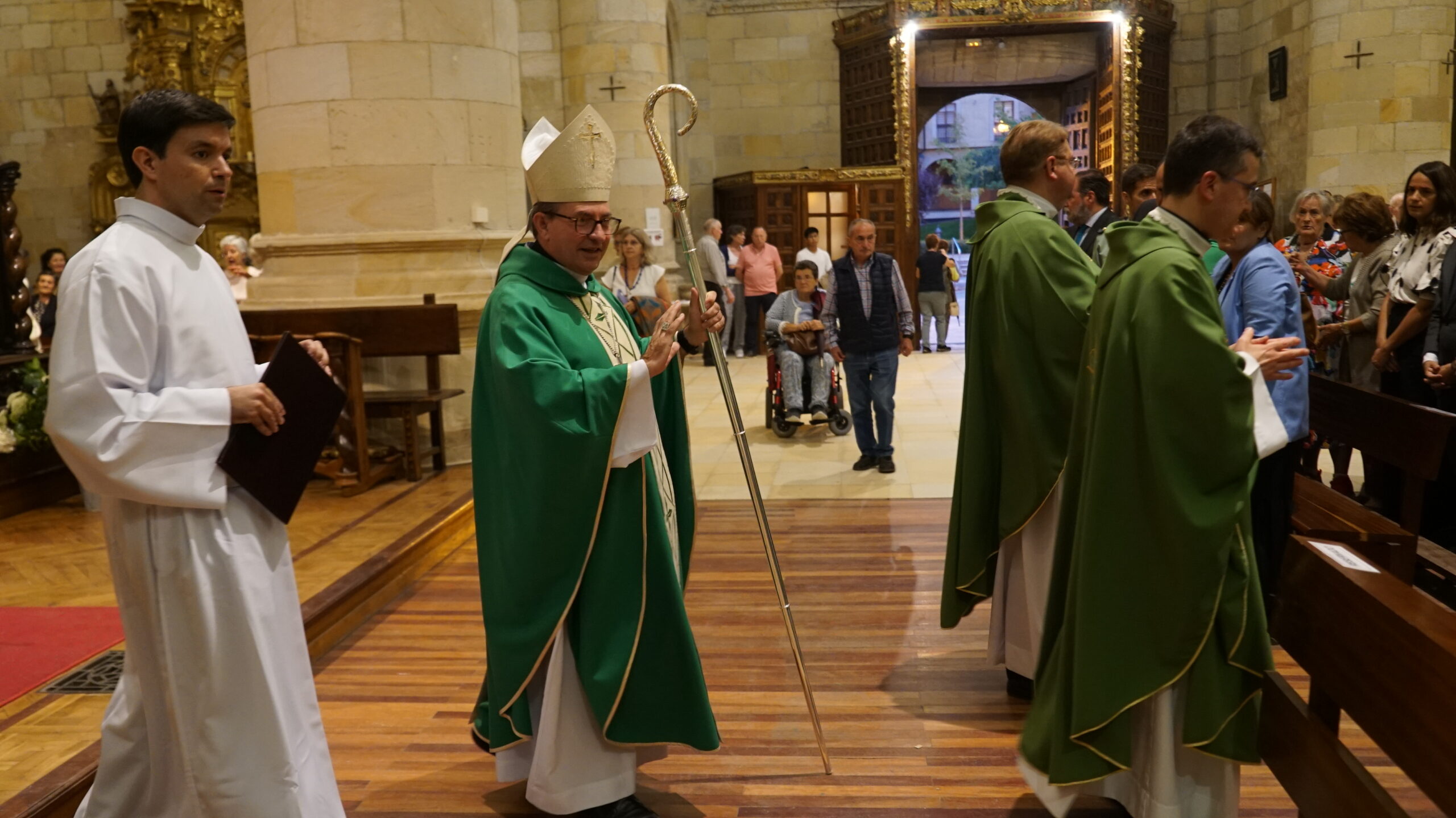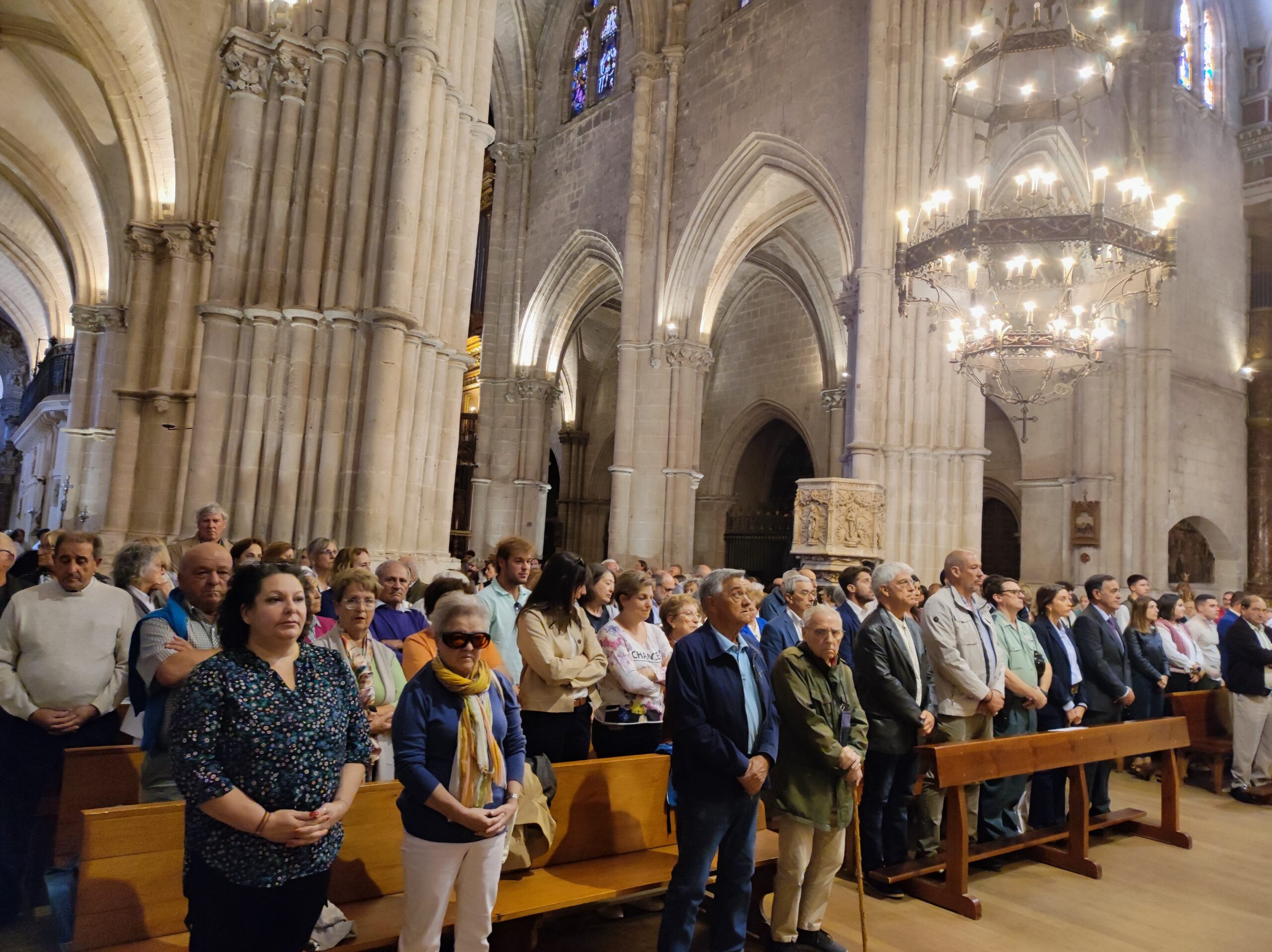 La Eucaristía en la Catedral concluía con las palabras del Vicario General, Gabriel Ángel Rodríguez, agradeciendo a don Abilio su servicio durante estos años y recordando como repicaban las campanas en su toma de posesión en el año 2017. La Diócesis ha regalado a Monseñor Abilio Martínez Varea un báculo que se le entregó en la Eucaristía de la Concatedral y ya pudo lucir en la de la Catedral burgense.
