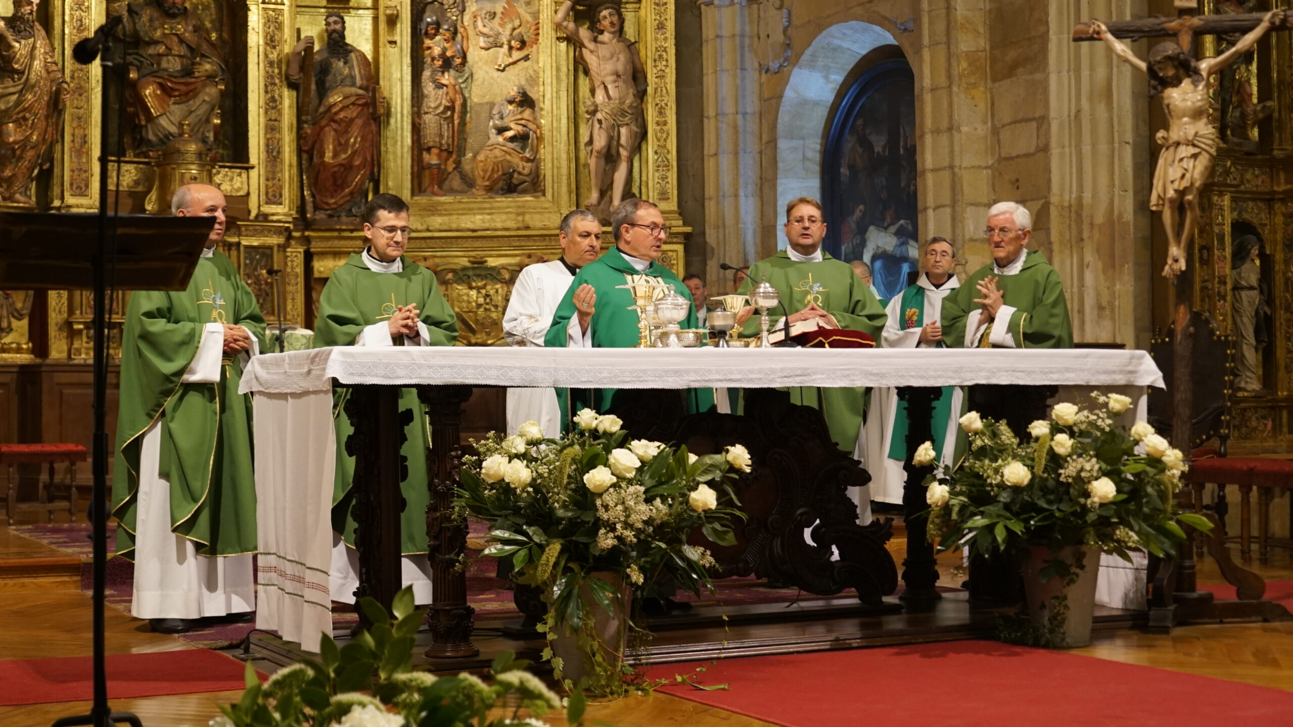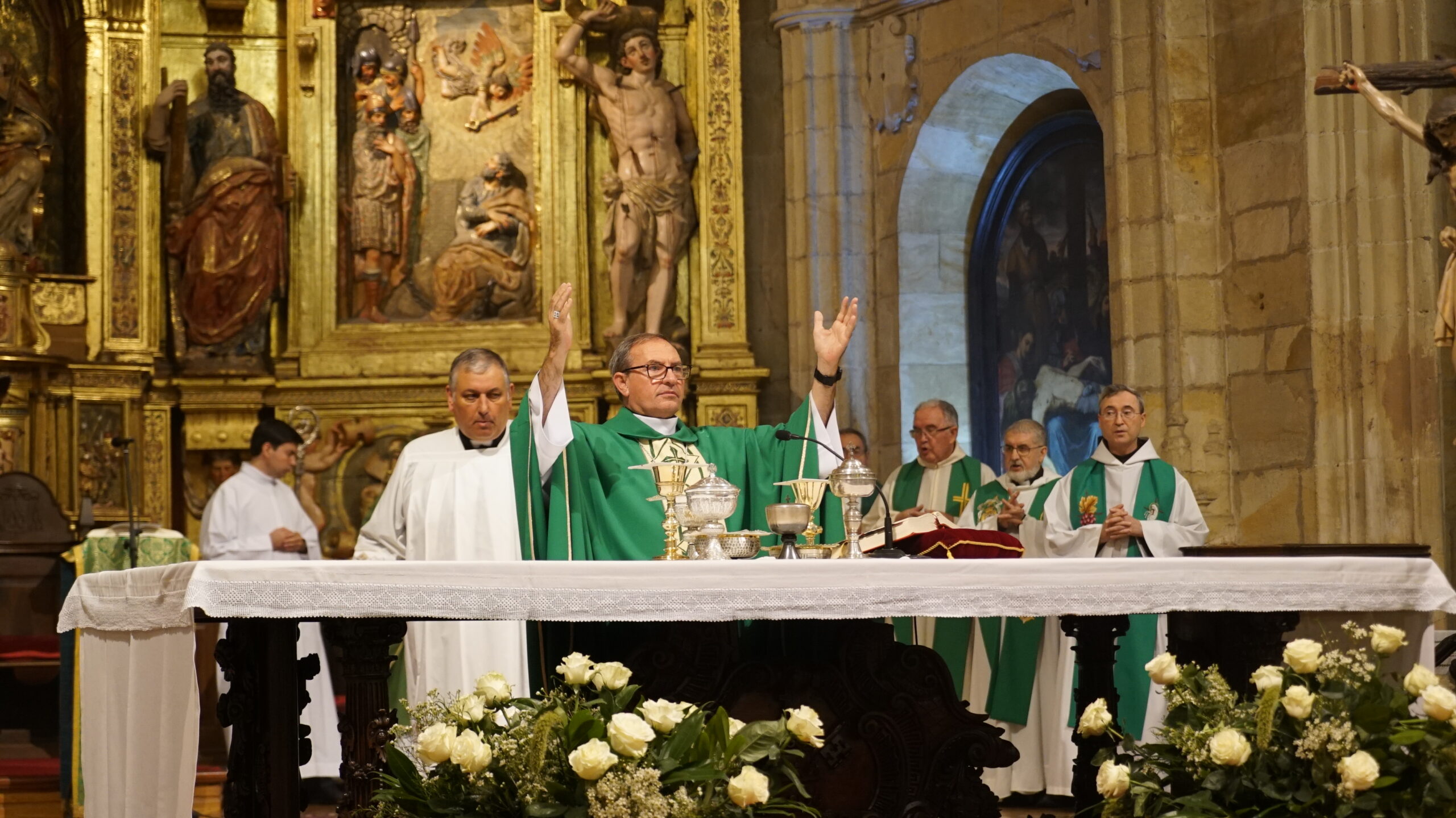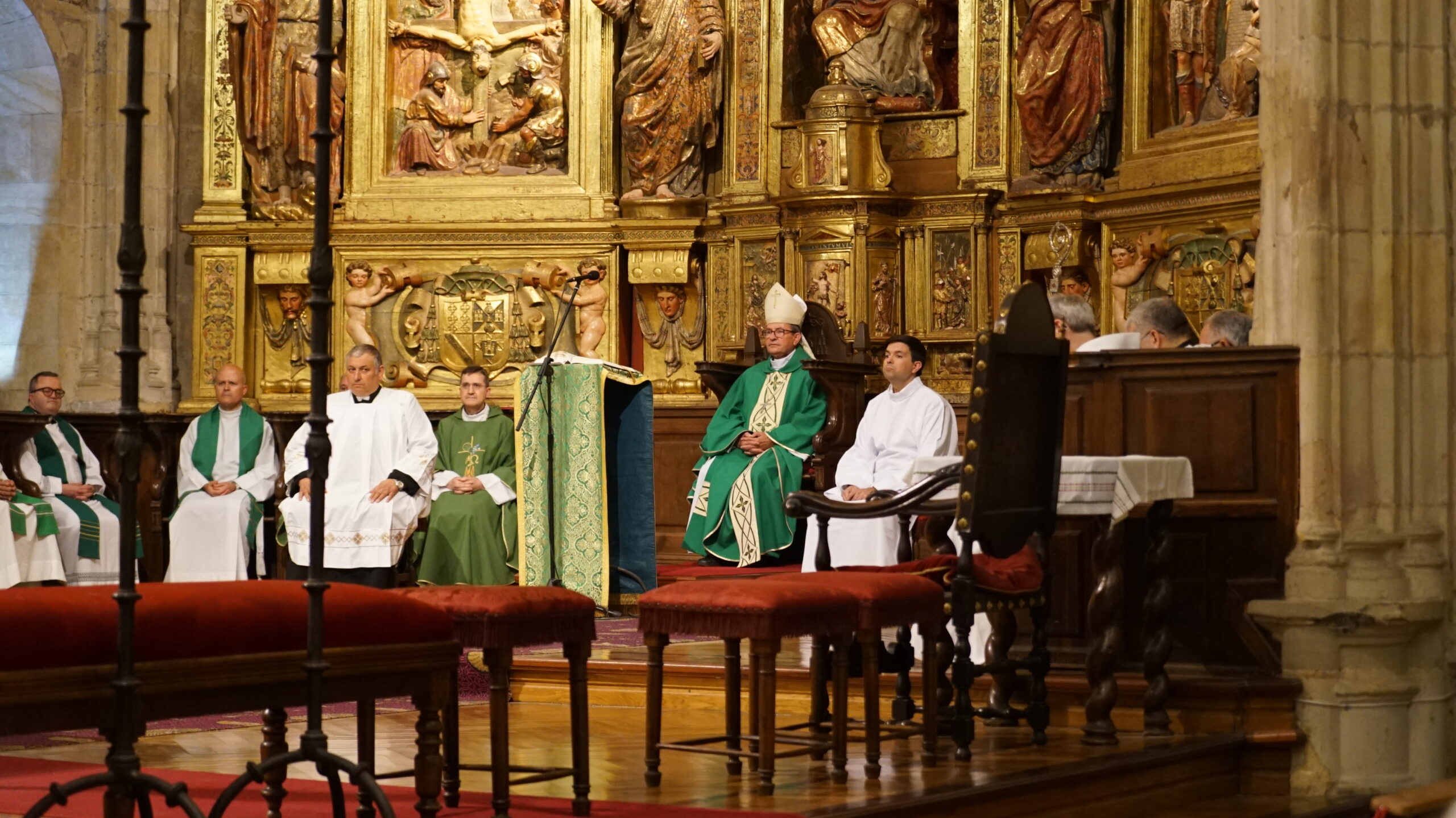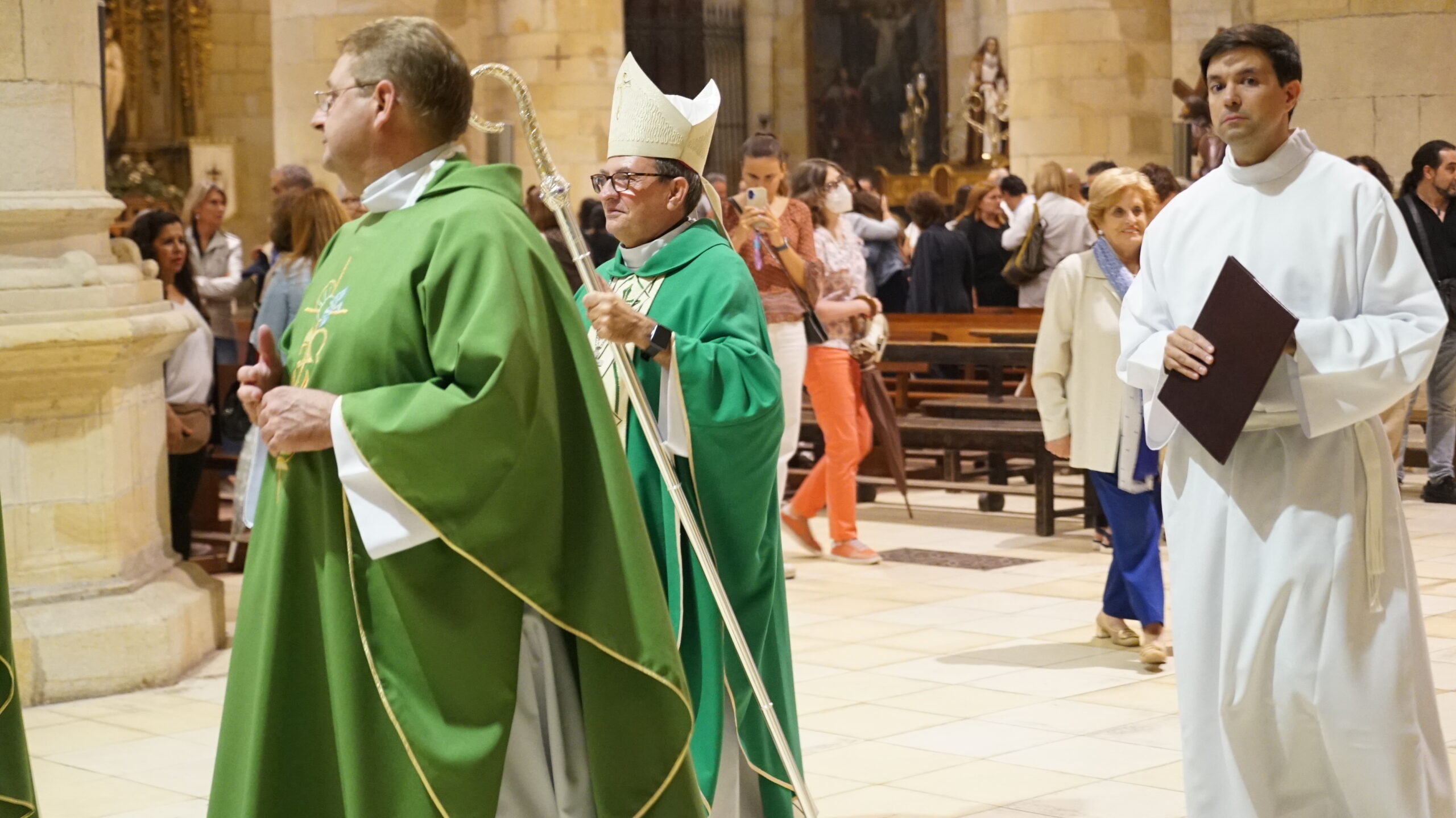 La Eucaristía en la Catedral concluía con las palabras del Vicario General, Gabriel Ángel Rodríguez, agradeciendo a don Abilio su servicio durante estos años y recordando como repicaban las campanas en su toma de posesión en el año 2017. La Diócesis ha regalado a Monseñor Abilio Martínez Varea un báculo que se le entregó en la Eucaristía de la Concatedral y ya pudo lucir en la de la Catedral burgense.