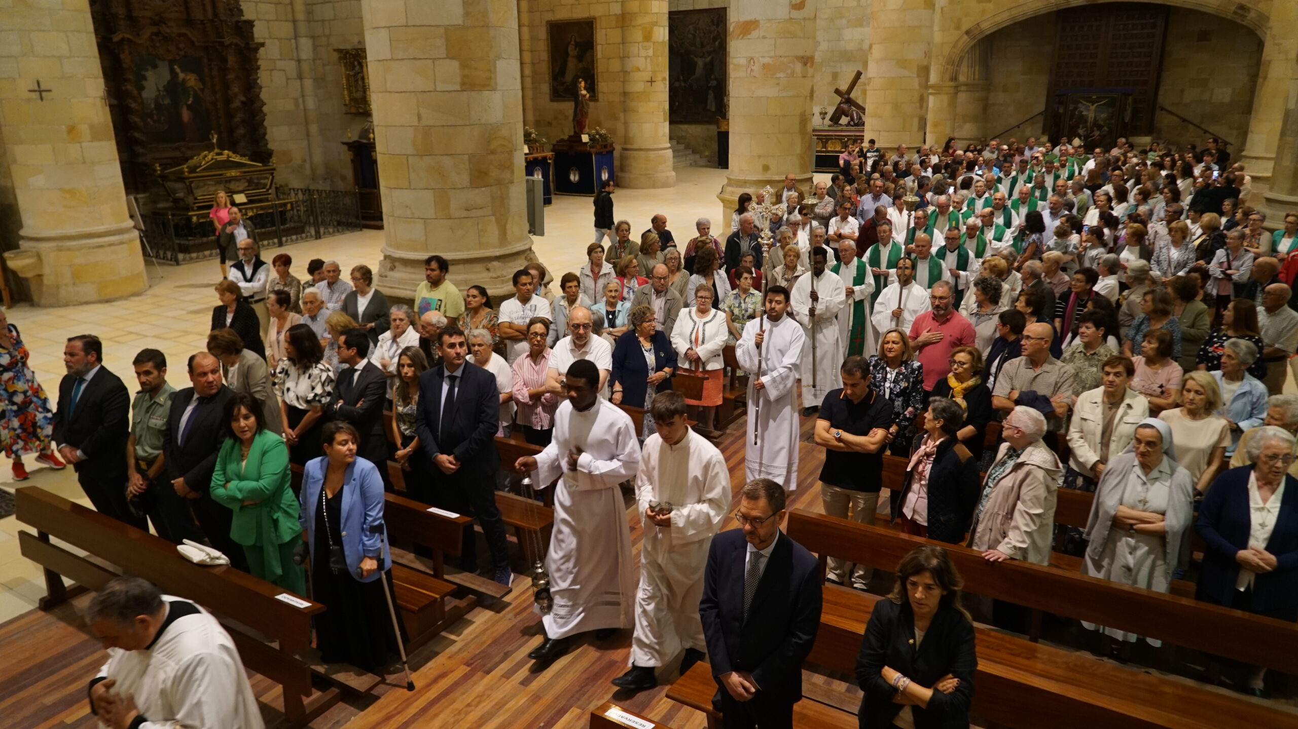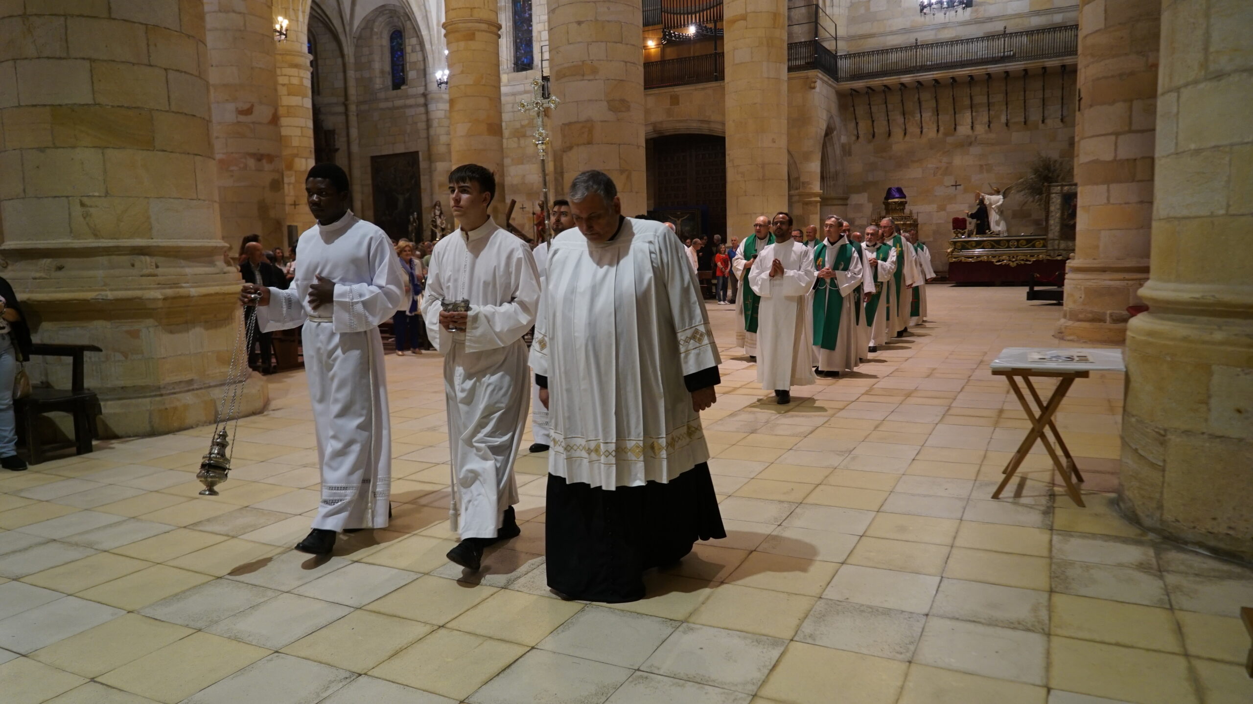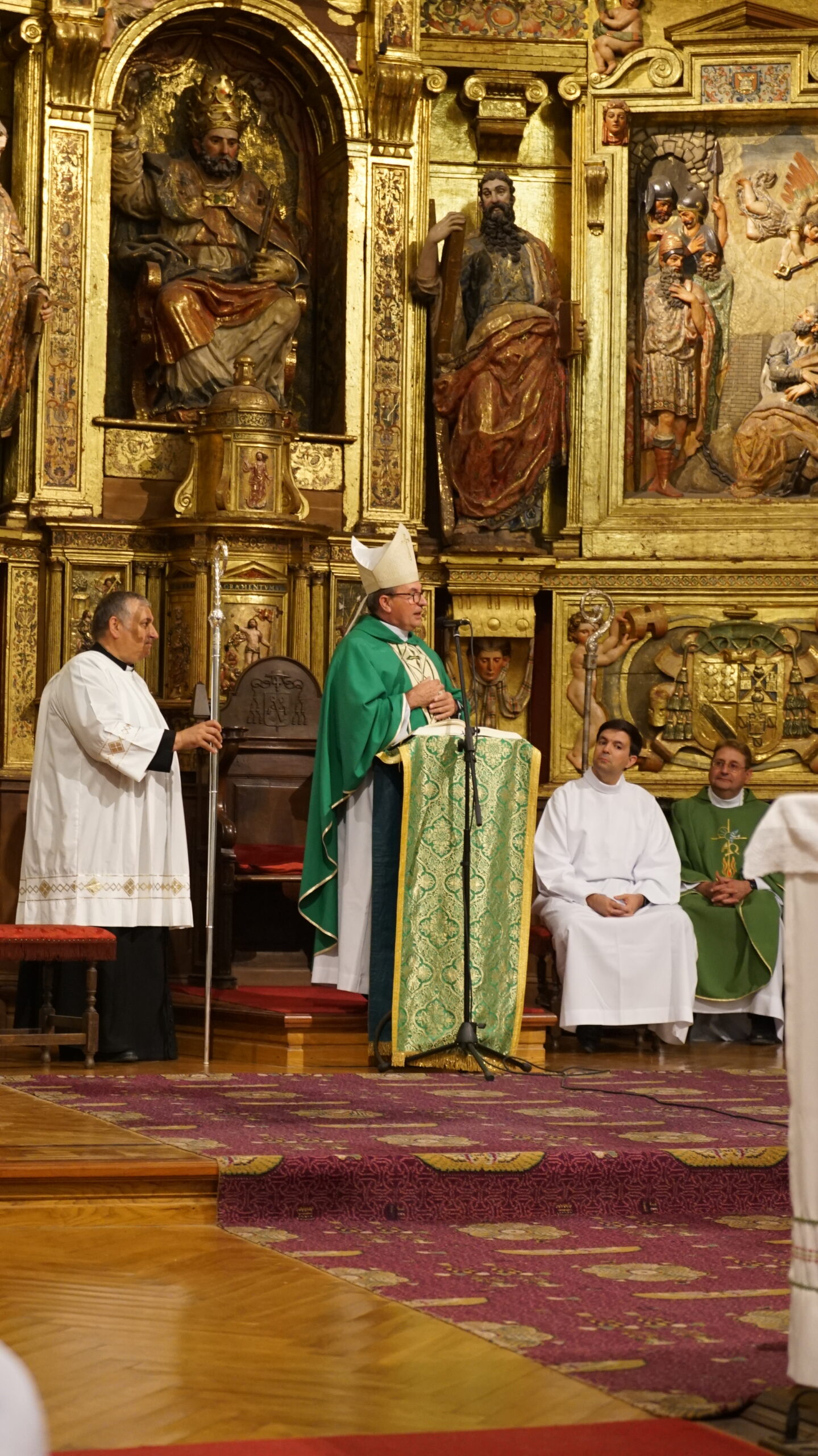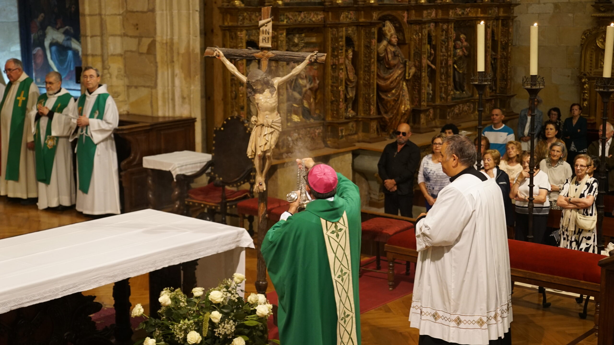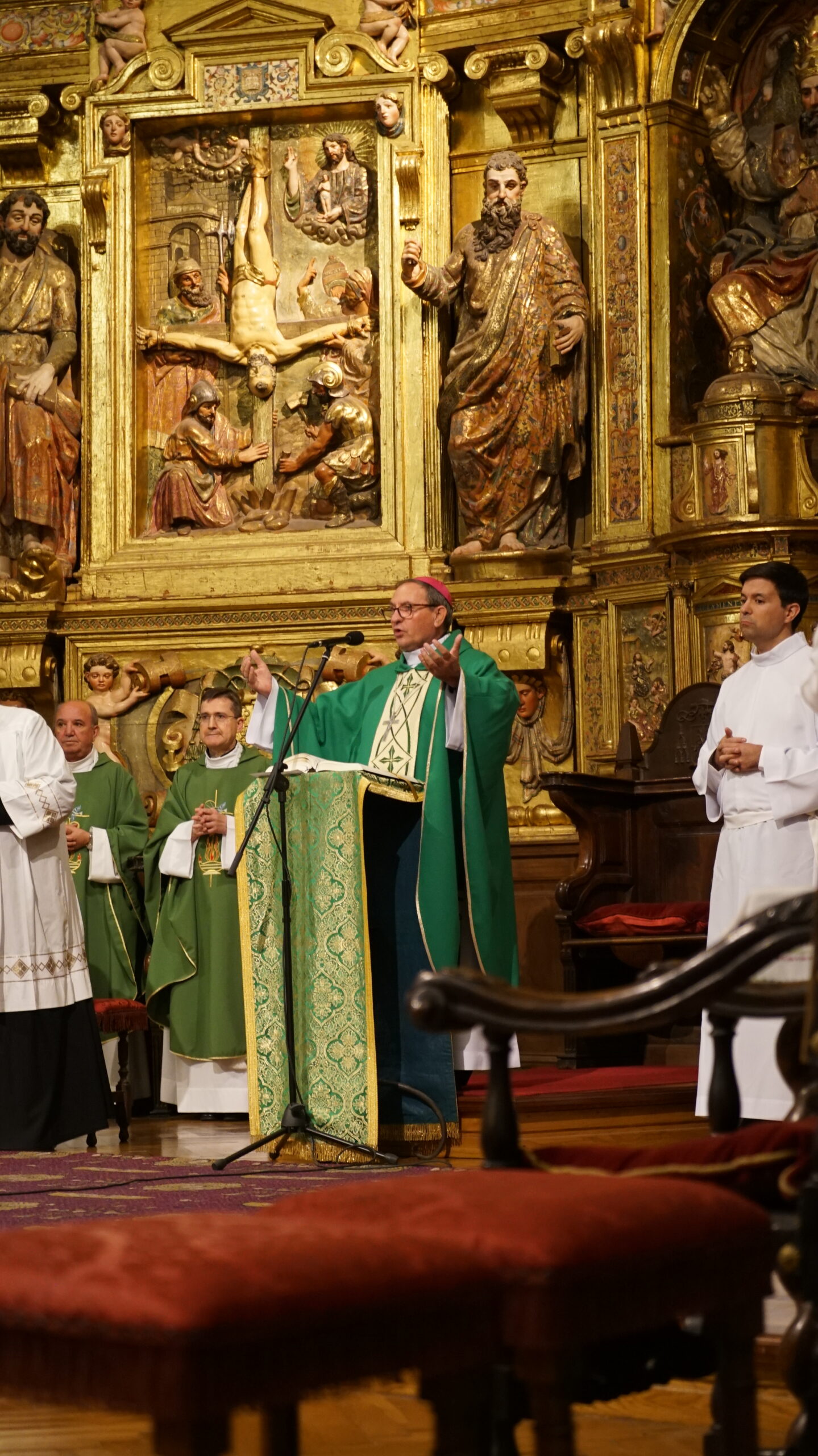 La Eucaristía en la Catedral concluía con las palabras del Vicario General, Gabriel Ángel Rodríguez, agradeciendo a don Abilio su servicio durante estos años y recordando como repicaban las campanas en su toma de posesión en el año 2017. La Diócesis ha regalado a Monseñor Abilio Martínez Varea un báculo que se le entregó en la Eucaristía de la Concatedral y ya pudo lucir en la de la Catedral burgense.