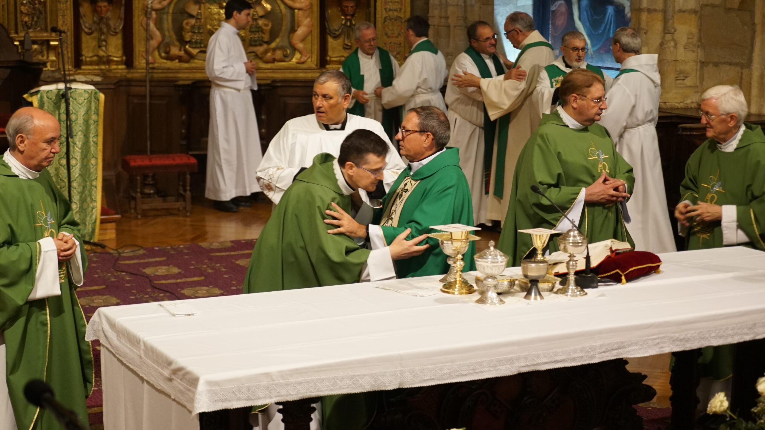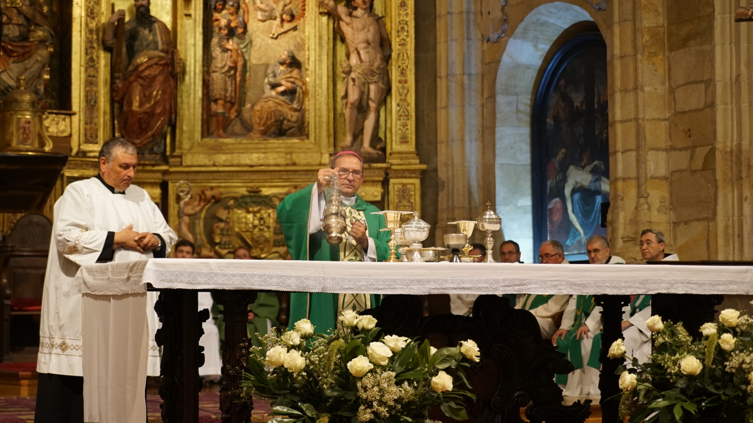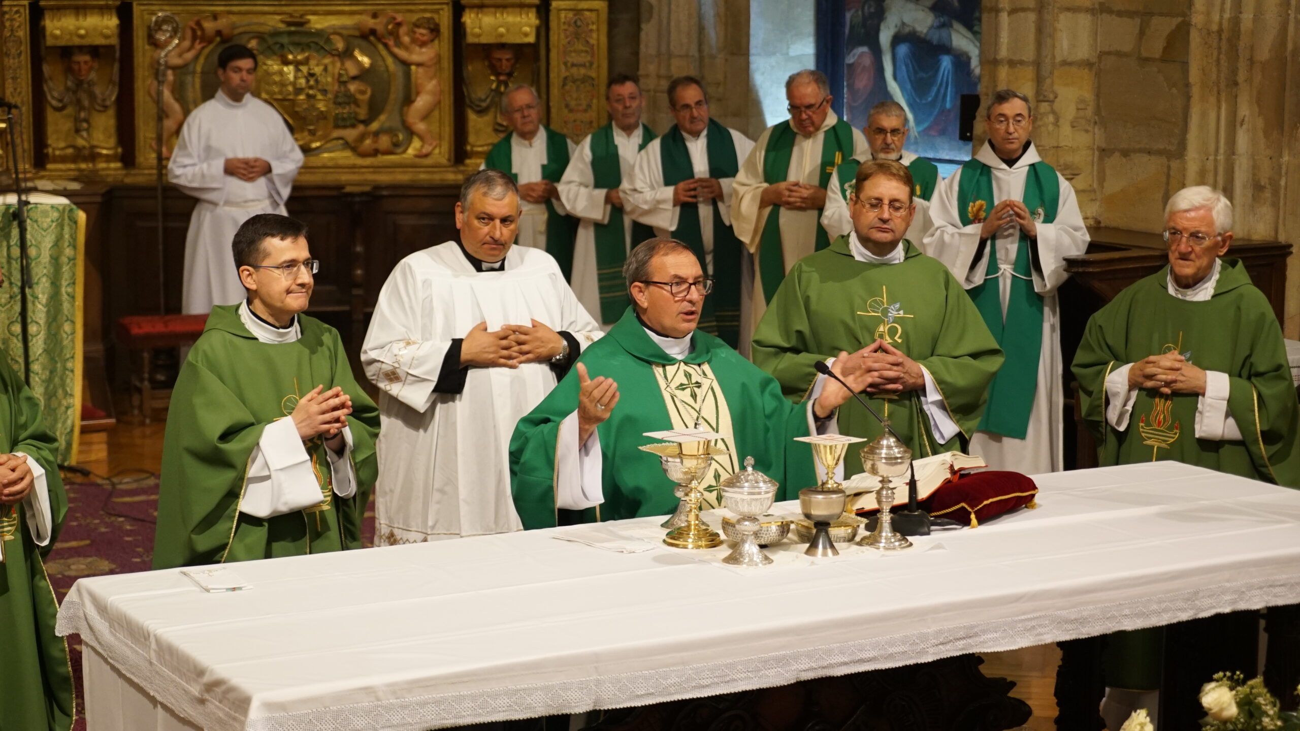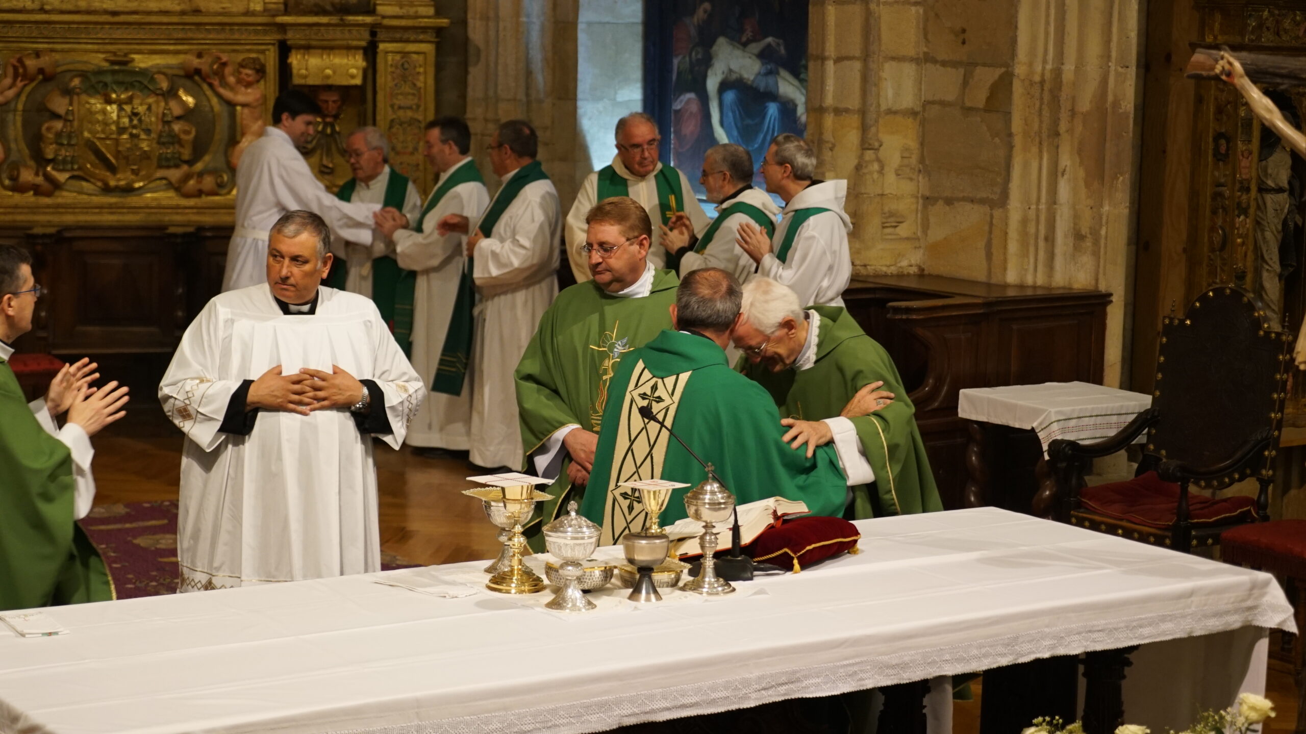 La Eucaristía en la Catedral concluía con las palabras del Vicario General, Gabriel Ángel Rodríguez, agradeciendo a don Abilio su servicio durante estos años y recordando como repicaban las campanas en su toma de posesión en el año 2017. La Diócesis ha regalado a Monseñor Abilio Martínez Varea un báculo que se le entregó en la Eucaristía de la Concatedral y ya pudo lucir en la de la Catedral burgense.