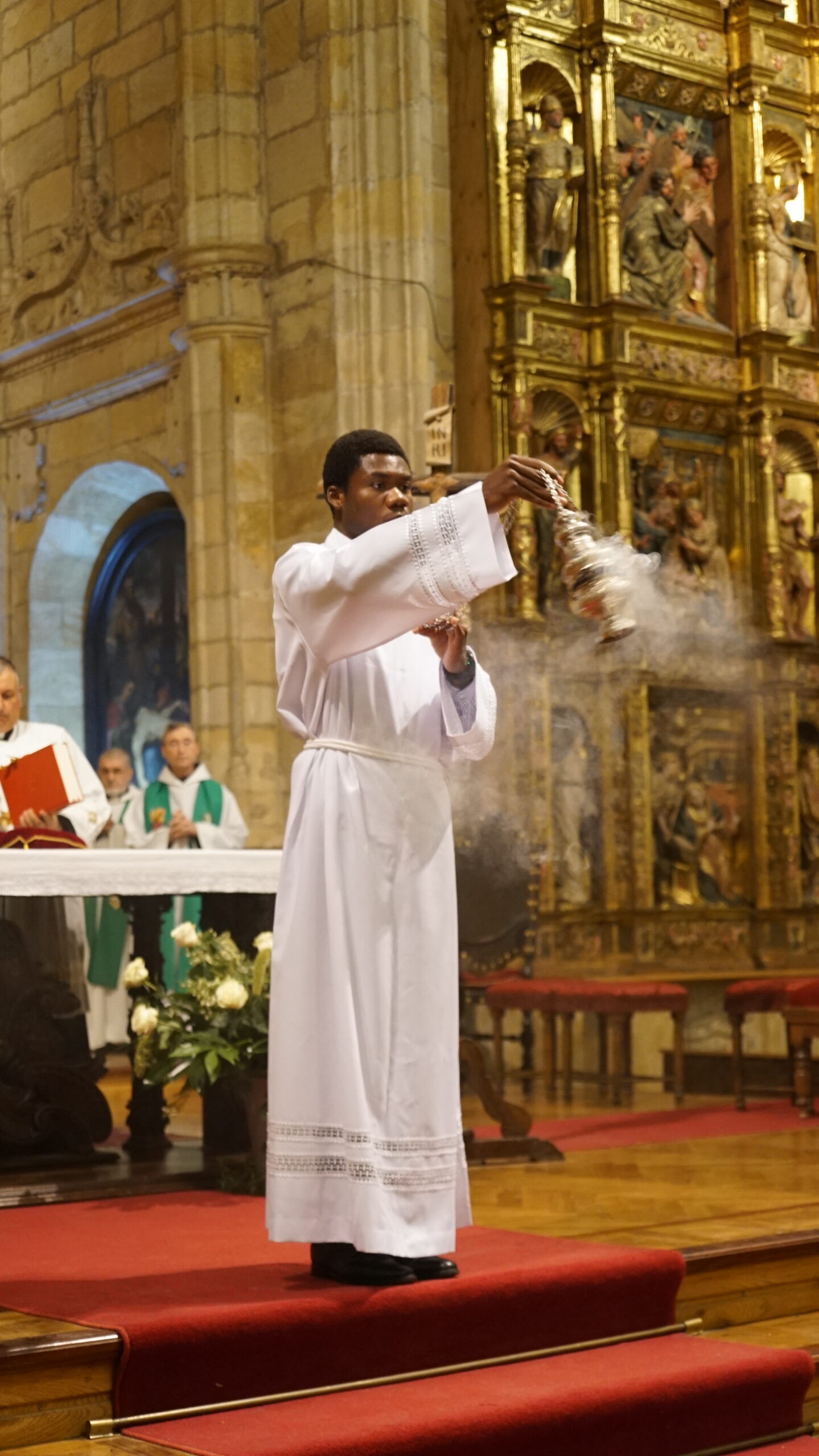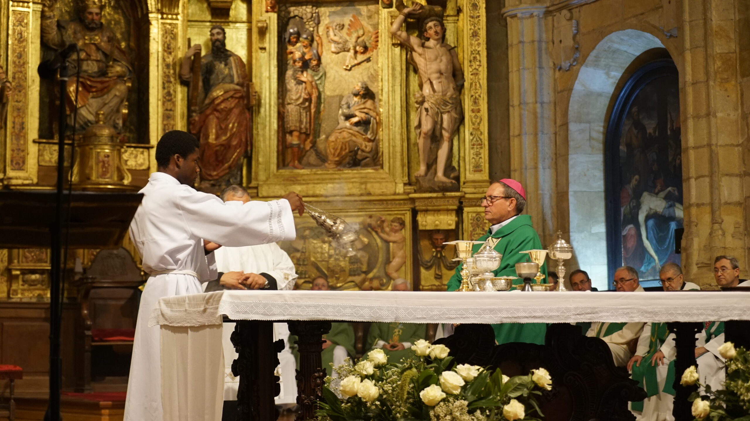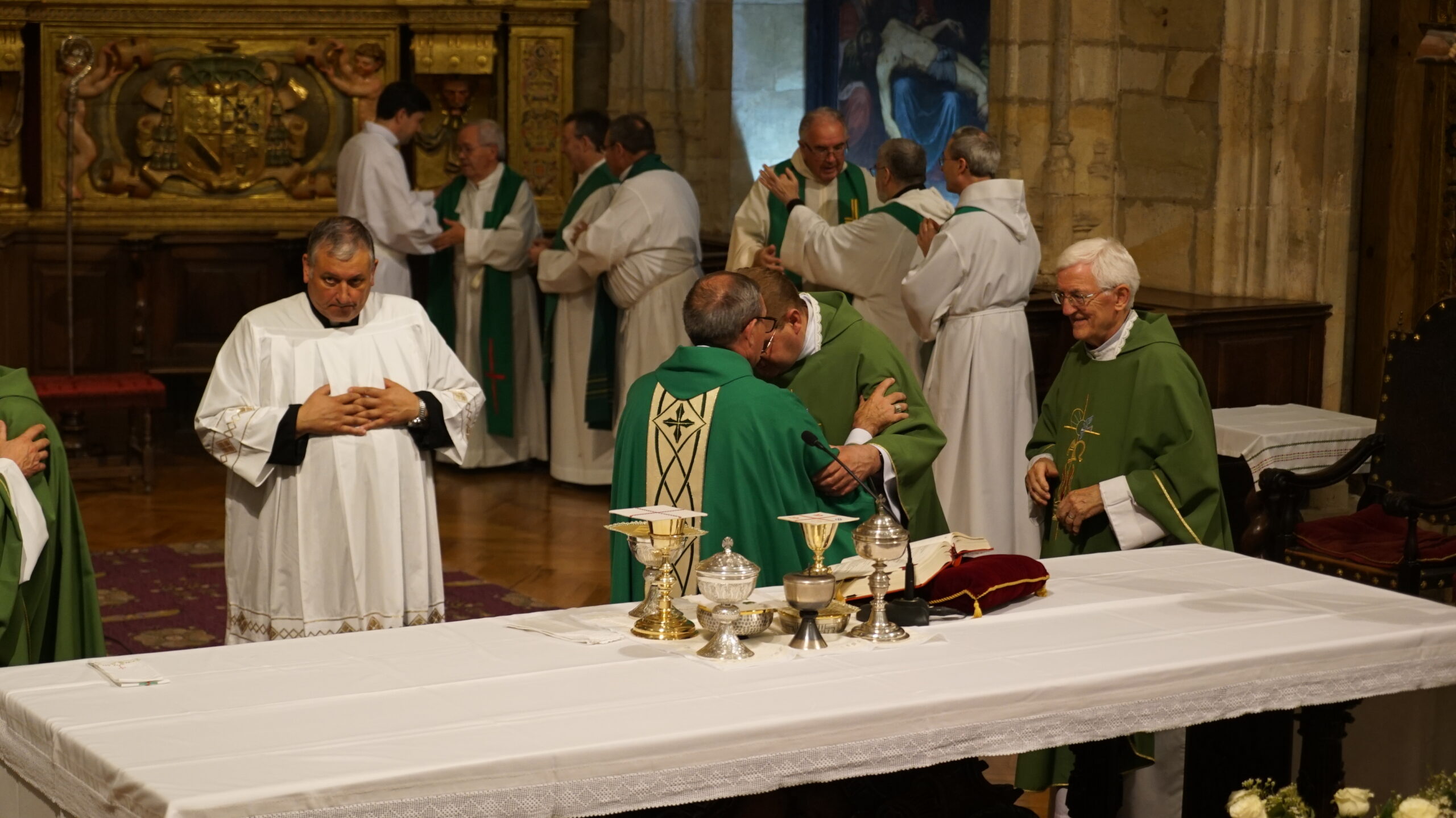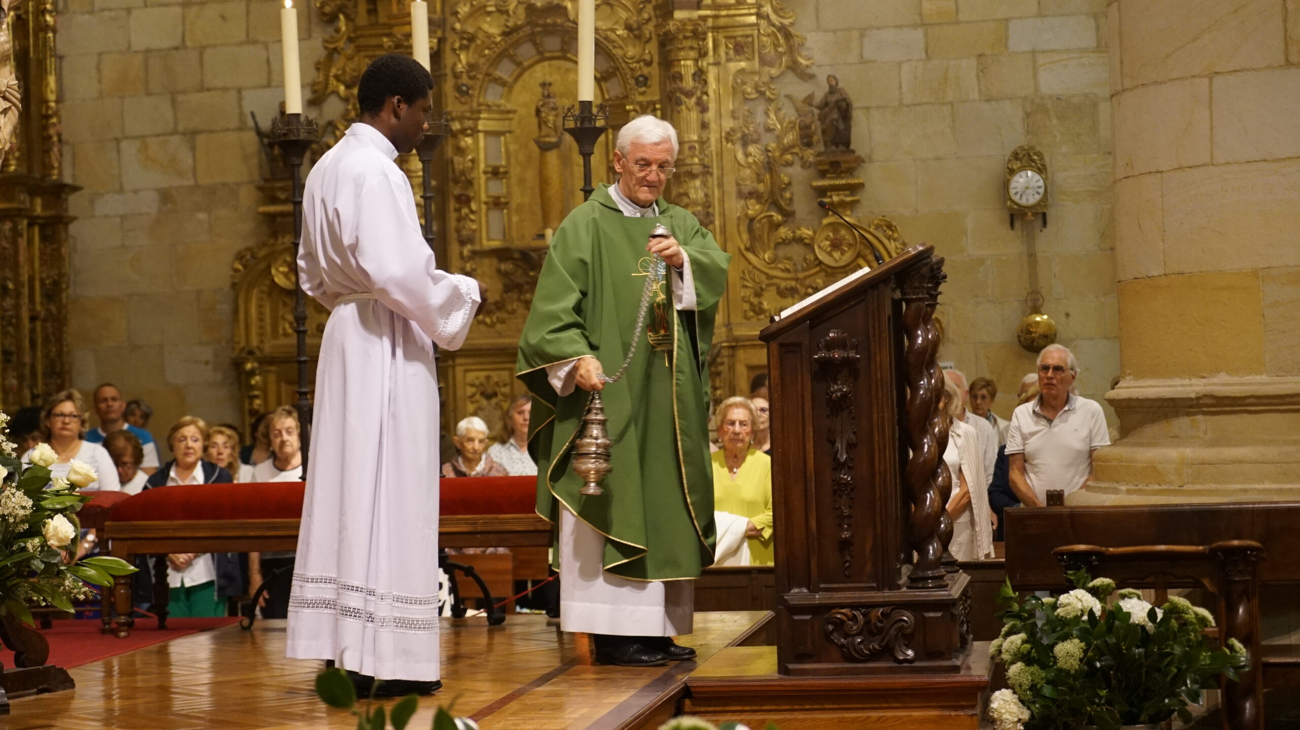 La Eucaristía en la Catedral concluía con las palabras del Vicario General, Gabriel Ángel Rodríguez, agradeciendo a don Abilio su servicio durante estos años y recordando como repicaban las campanas en su toma de posesión en el año 2017. La Diócesis ha regalado a Monseñor Abilio Martínez Varea un báculo que se le entregó en la Eucaristía de la Concatedral y ya pudo lucir en la de la Catedral burgense.