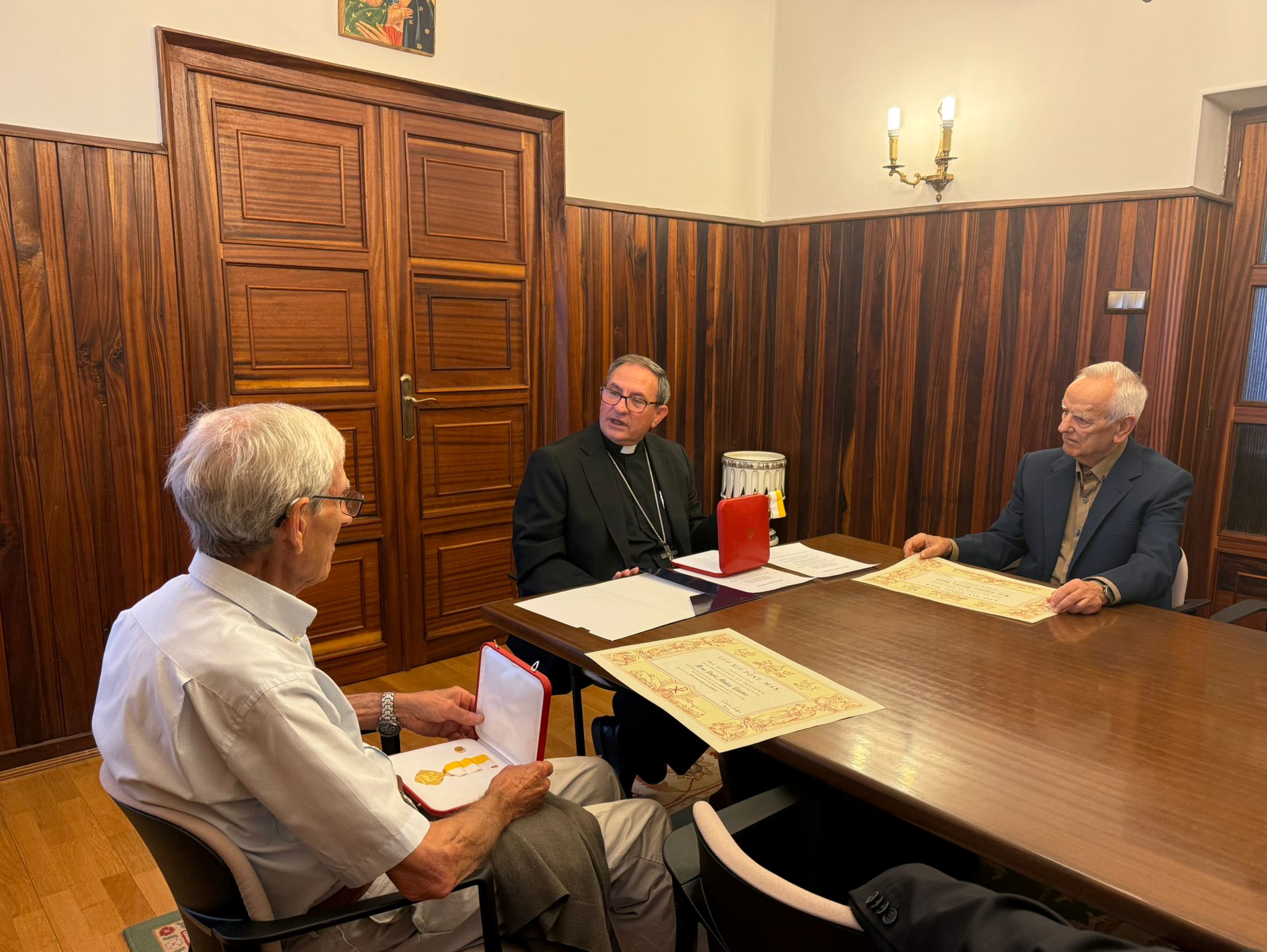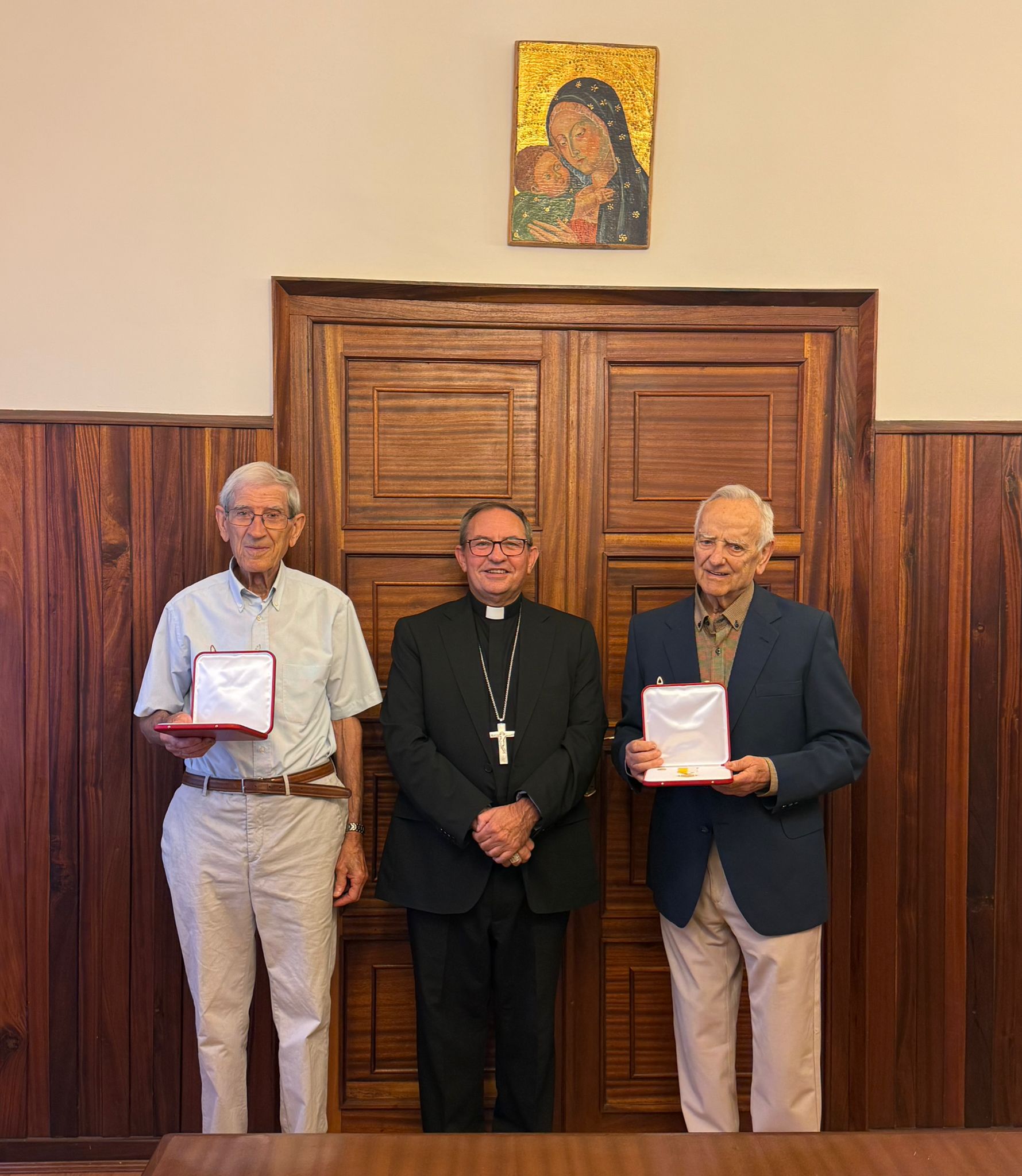 Emiliano y Darío recibieron la distinción en un acto sencillo pero sentido haciendo gala de como ha sido su servicio a la Iglesia durante todos estos años. La Pro Ecclesia et Pontifice fue instituida por el papa León XIII en 1888 con ocasión de su jubileo sacerdotal y en 1898 se convirtió en una condecoración estable de la Santa Sede. En latín significa “Por la Iglesia y el Papa”, se presenta como una cruz dorada, esmaltada en blanco, con las imágenes de San Pedro y San Pablo en el anverso y en el reverso figura el nombre del Papa que la concede. Se lleva con cinta de color amarillo y blanco (los colores vaticanos). La concesión de la distinción viene directamente el Papa, a propuesta de obispos u otros superiores eclesiásticos. Se considera un signo de reconocimiento público de fidelidad y servicio. Tiene un carácter pastoral y agradecido a la entrega cotidiana.