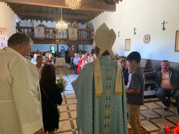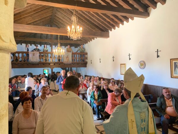 A mediodía, el Sr. Obispo presidió la eucaristía de la romería de la Virgen de Olmacedo en la localidad de Valdenebro. A las 11h los feligreses trasladaron en procesión desde la parroquia de San Miguel Arcángel hasta la ermita a la Virgen de Olmacedo para celebrar la eucaristía junto a los fieles que se desplazaron de Ólvega y así celebrar el 20º aniversario del hermanamiento de las dos localidades que tienen como patrona a la Virgen de Olmacedo.