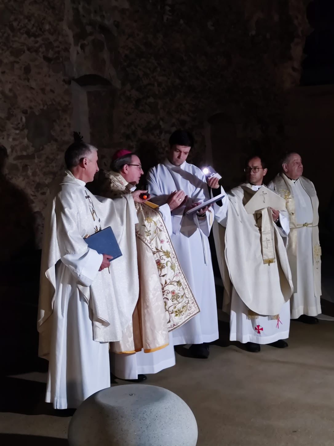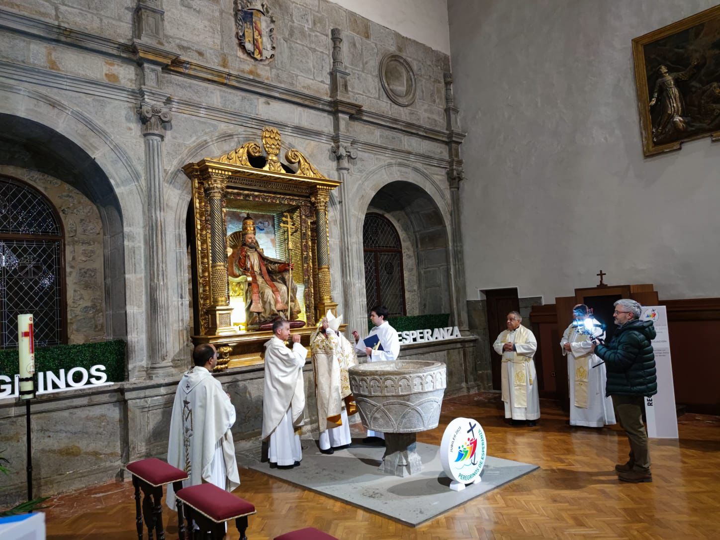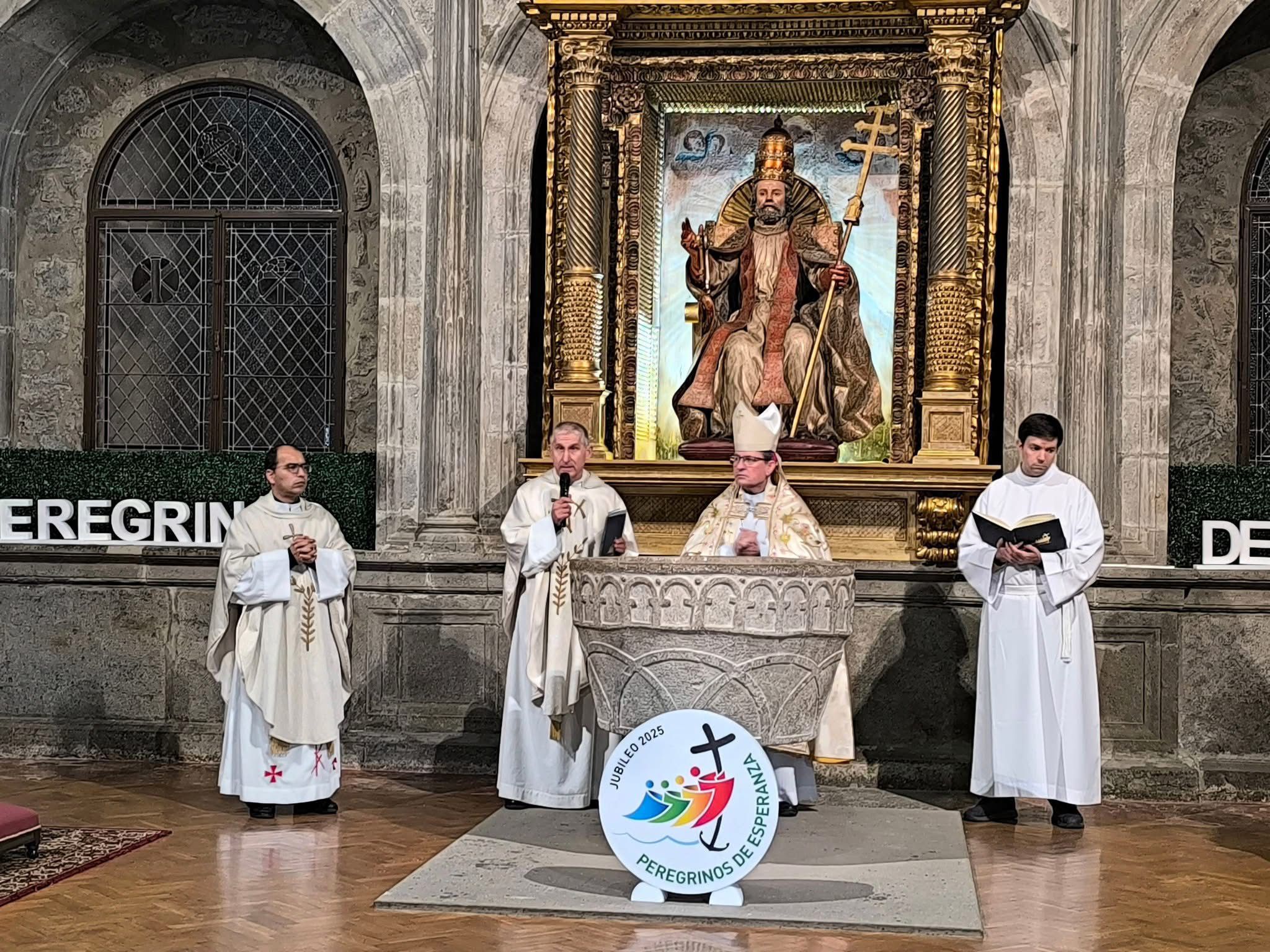 Seguidamente, comenzó la solemne eucaristía, presidida por el Obispo, al que acompañaban el párroco de Ágreda, Alberto Blanco, y varios sacerdotes del Arciprestazgo. En su homilía, D. Abilio glosó la importancia de vivir un año jubilar, como fuente de esperanza y presencia de Cristo resucitado en la Iglesia. Hizo referencia a su origen en el Antiguo Testamento y al deseo de su santidad el Papa Francisco de renovar la virtud teologal de la esperanza en la vida cotidiana de los cristianos. Durante la celebración, los coros parroquiales animaron al canto. Concluyó la inauguración con el himno a la titular del templo.
