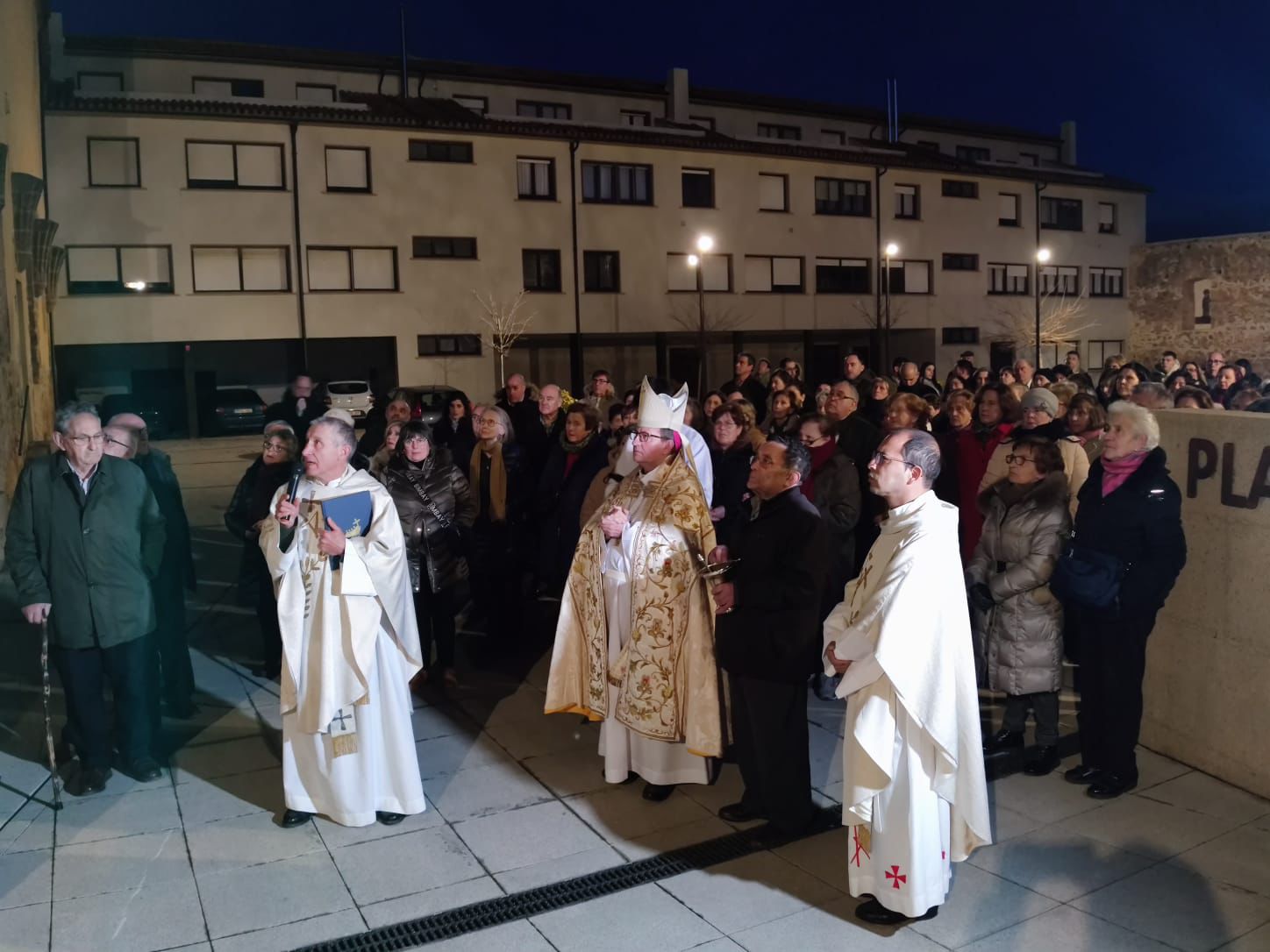 La celebración comenzó a las 18:30 con una procesión, que se inició a los pies de la imagen de la Virgen de los Milagros, situada en la Plaza del Patronazgo. Después de los ritos iniciales, y precedidos de la cruz, la comitiva se encaminó hacia la basílica entonando cantos alusivos al acto. Cerca del templo, la procesión hizo una breve pausa en la que D. Abilio bendijo una placa de agradecimiento a los artífices de la transformación del Patio del Fuerte en la Plaza del Patronazgo. A continuación, el pueblo fiel entró por la puerta principal y se dirigió hacia la capilla del bautismo. Después de leída la bula del Año Jubilar y bendecida el agua de la fuente bautismal, cada participante veneró la pila como signo de agradecimiento de su propio bautismo.
