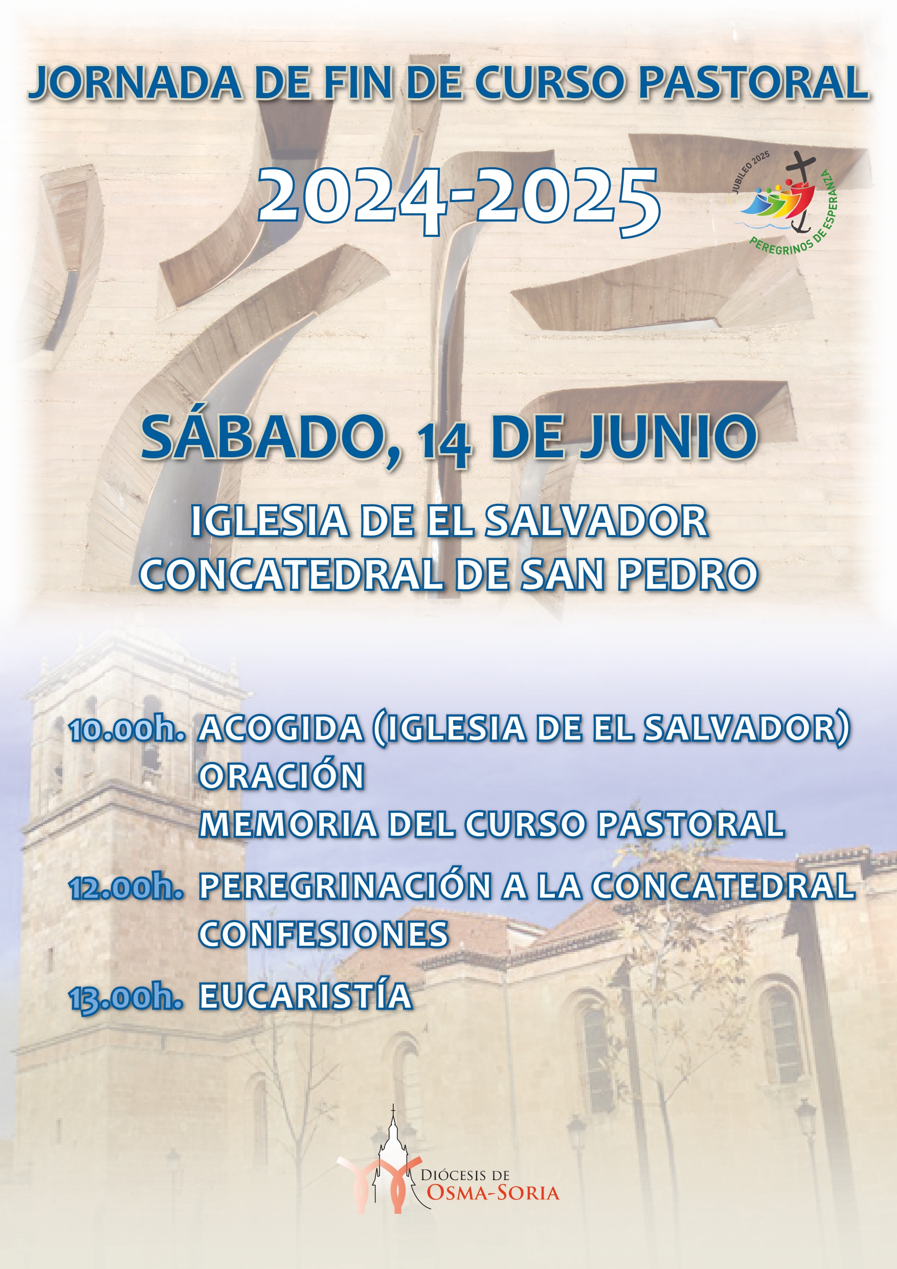 La Diócesis de Osma-Soria celebrará la jornada de fin de curso pastoral el próximo sábado día 14 de junio en la capital soriana. Como ya se hizo el año anterior, es voluntad del Obispo “que nos juntemos como familia diocesana”.