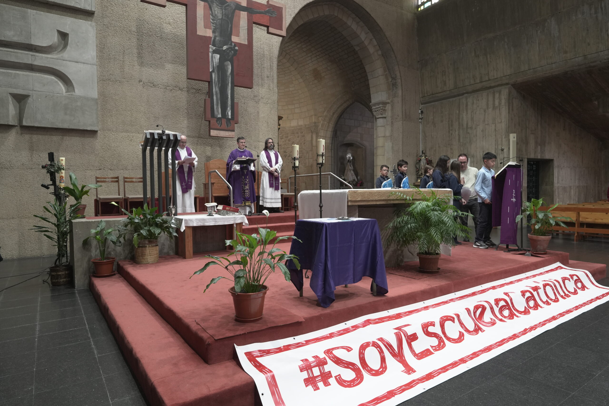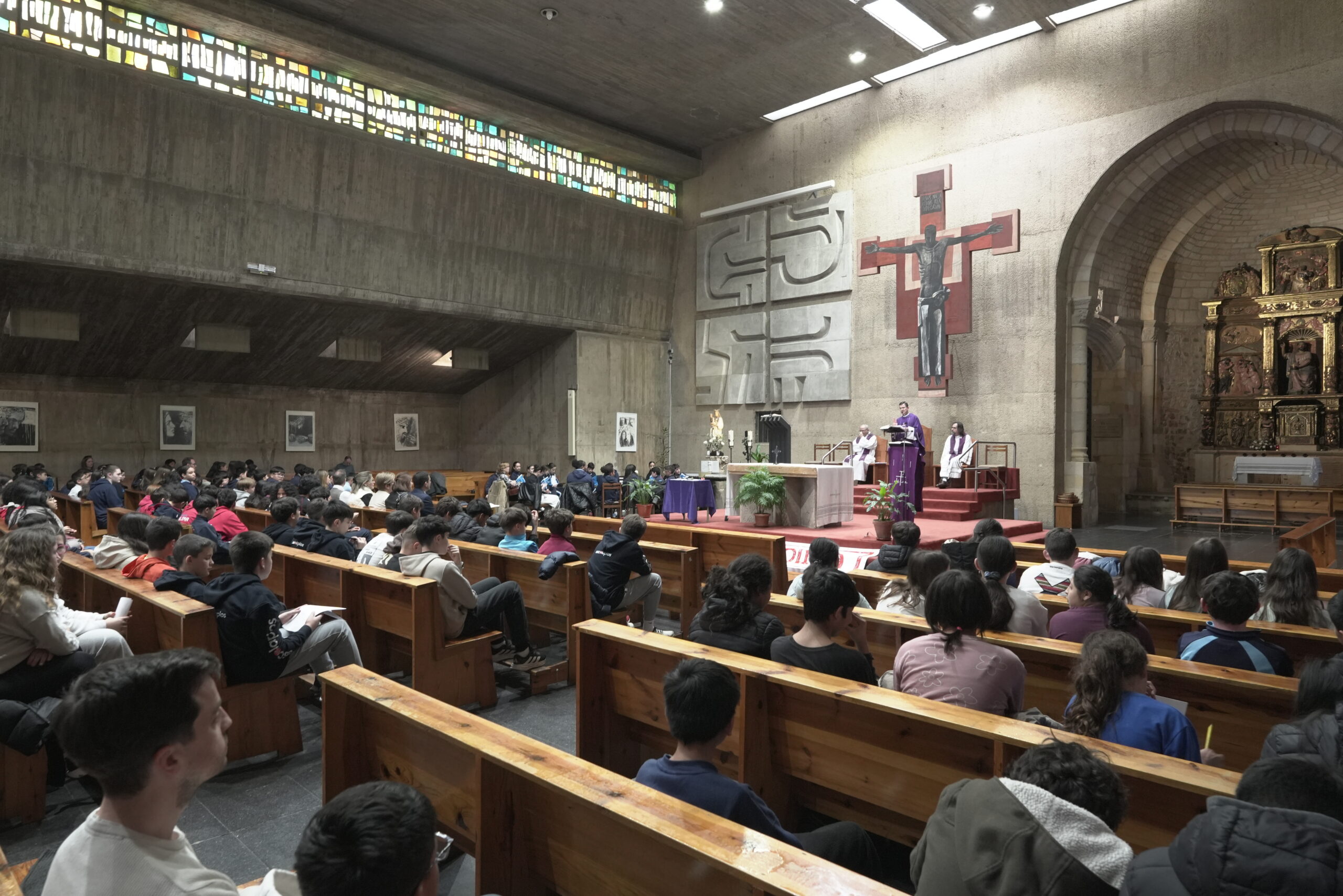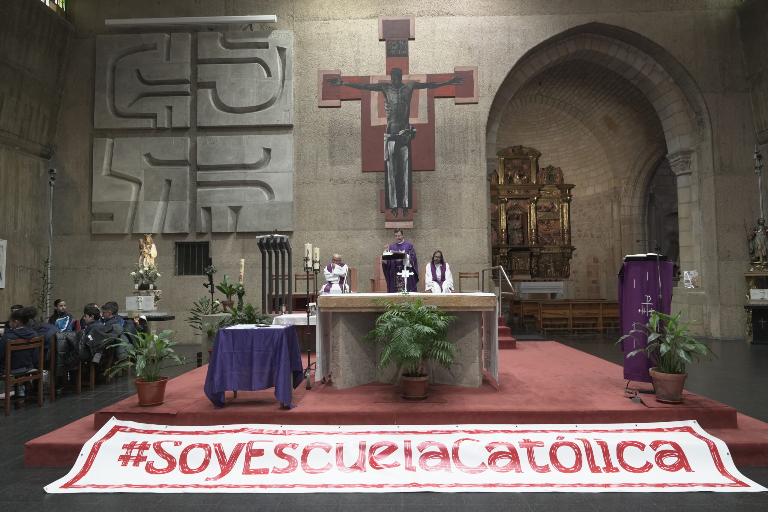 Los centros educativos católicos de la Diócesis celebraron el jueves día 12 de marzo el día de “Escuelas Católicas Soria” con una jornada que reunió a alumnos de 6º de primaria y 1º de ESO junto a docentes y párrocos. La cita tuvo lugar en la Iglesia de El Salvador de Soria con una Eucaristía presidida por el Administrador diocesano, Gabriel Ángel Rodríguez Millán, y concelebrada por los sacerdotes vinculados a los colegios participantes. Fue una ceremonia sencilla, cercana y participativa, que sirvió para reforzar la vivencia de fe y la identidad compartida de los centros concertados de Soria. Participaron alumnos y docentes de los cinco centros de Soria, Almazán y El Burgo de Osma (Nuestra Señora del Pilar Escolapios, Santa Teresa de Jesús Escolapias, Trilema Soria, Calasancio y Seminario Diocesano Santo Domingo de Guzmán).