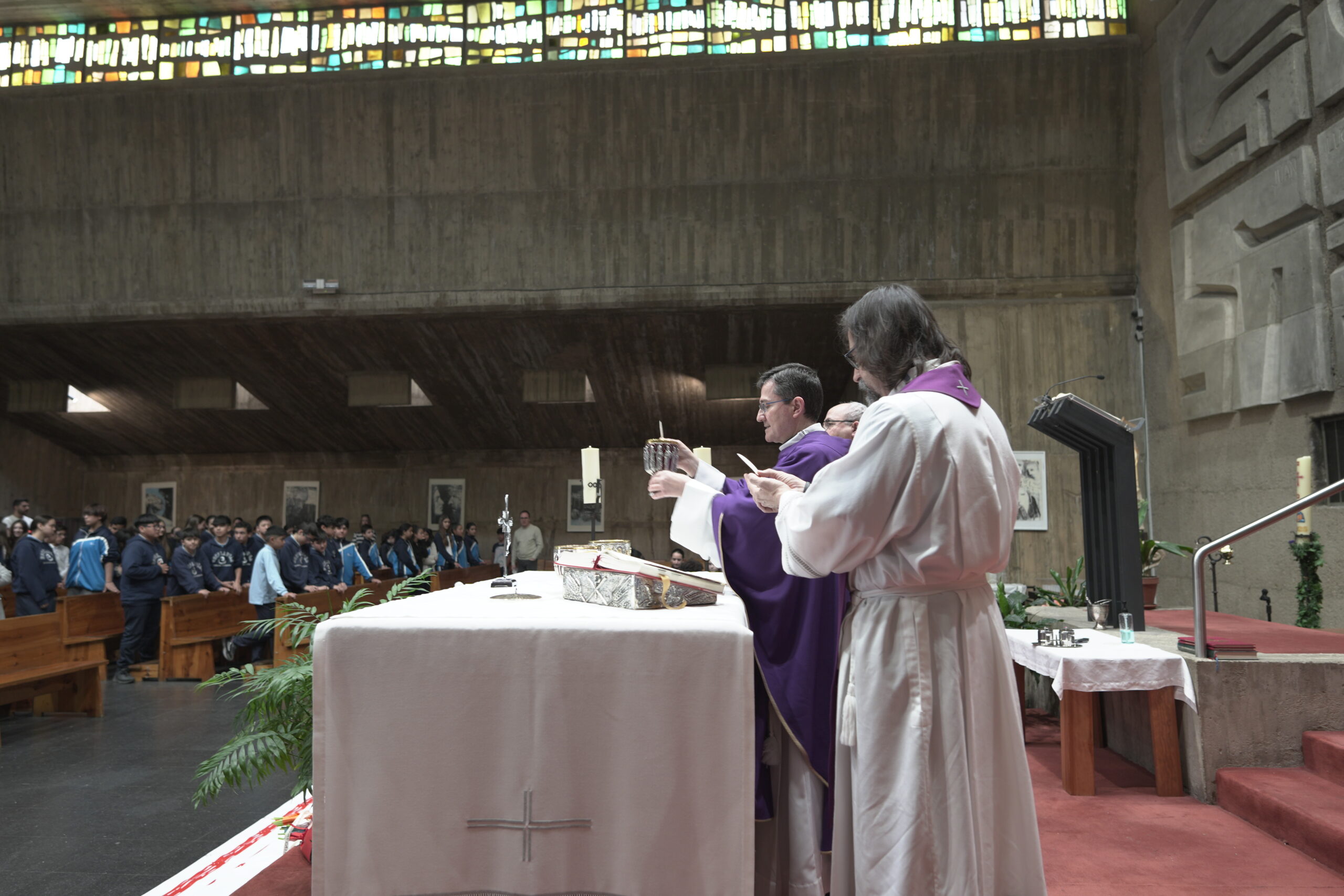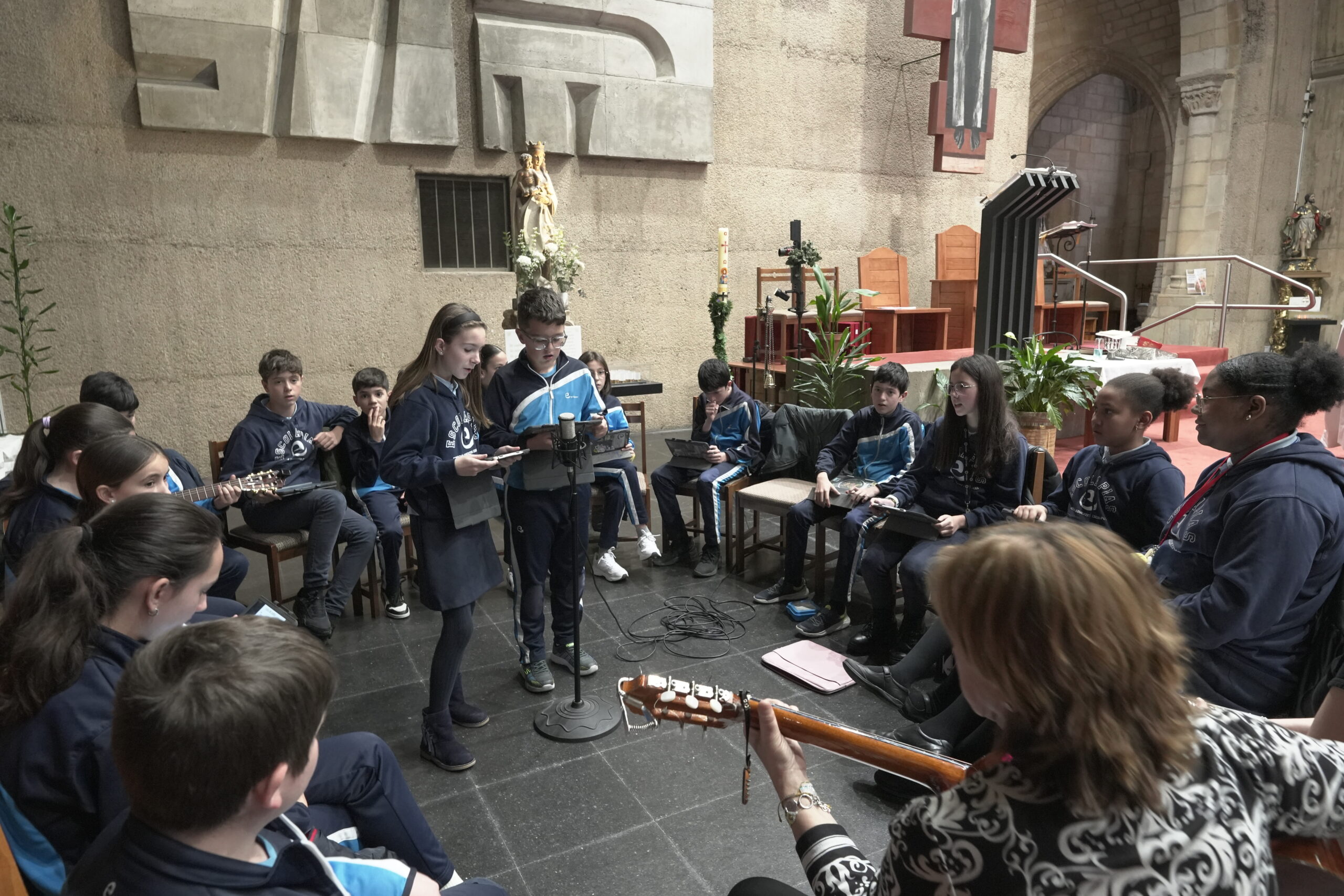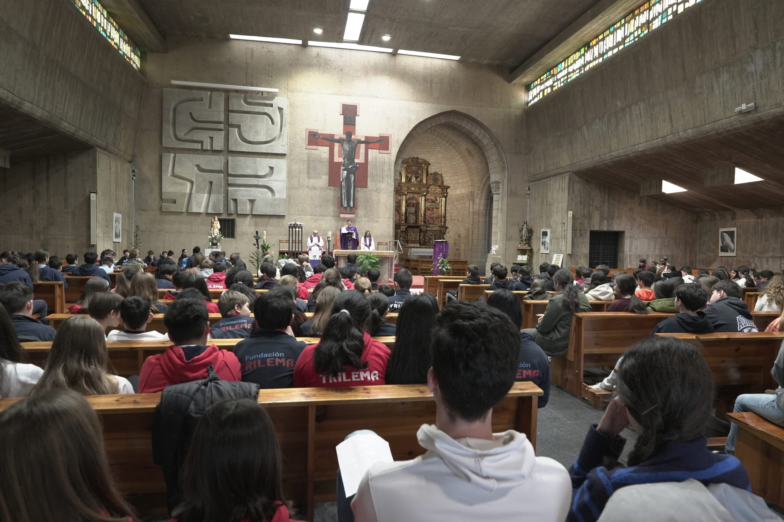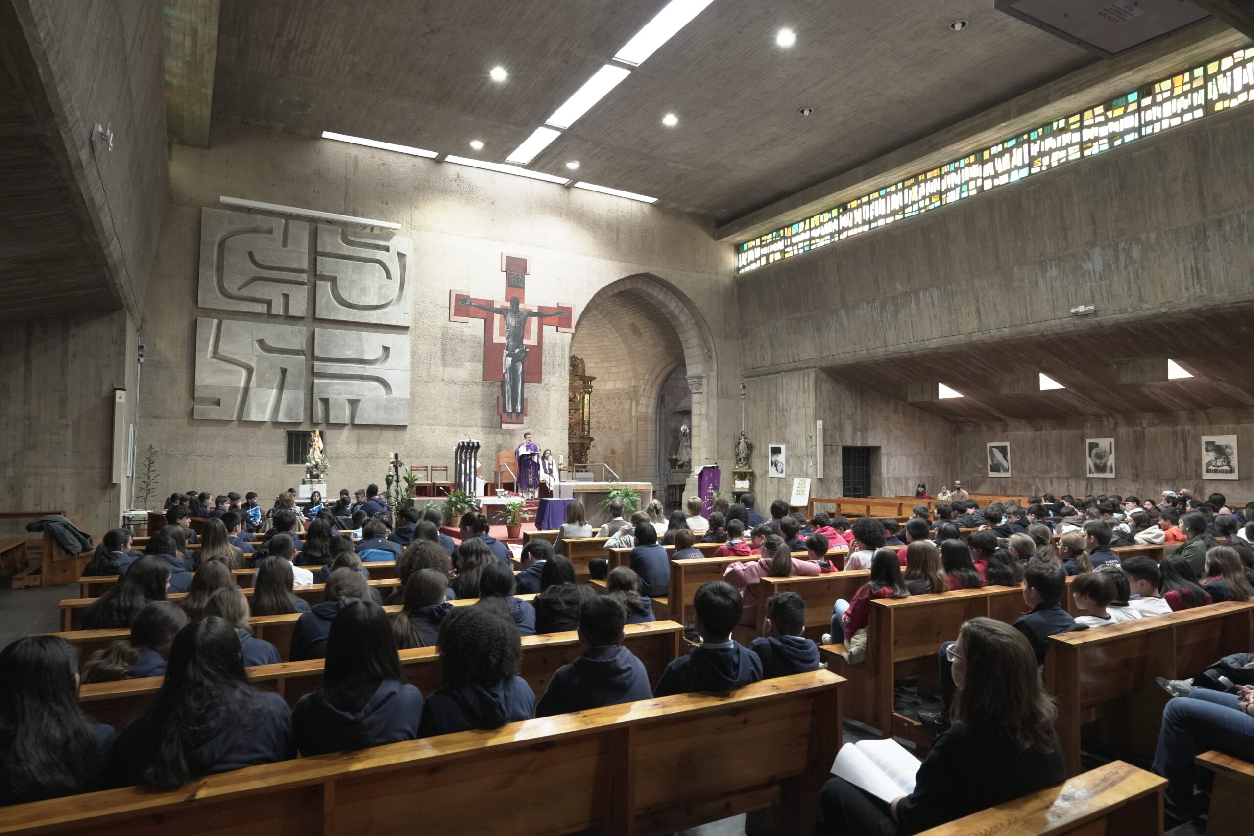 Los centros educativos católicos de la Diócesis celebraron el jueves día 12 de marzo el día de “Escuelas Católicas Soria” con una jornada que reunió a alumnos de 6º de primaria y 1º de ESO junto a docentes y párrocos. La cita tuvo lugar en la Iglesia de El Salvador de Soria con una Eucaristía presidida por el Administrador diocesano, Gabriel Ángel Rodríguez Millán, y concelebrada por los sacerdotes vinculados a los colegios participantes. Fue una ceremonia sencilla, cercana y participativa, que sirvió para reforzar la vivencia de fe y la identidad compartida de los centros concertados de Soria. Participaron alumnos y docentes de los cinco centros de Soria, Almazán y El Burgo de Osma (Nuestra Señora del Pilar Escolapios, Santa Teresa de Jesús Escolapias, Trilema Soria, Calasancio y Seminario Diocesano Santo Domingo de Guzmán).
