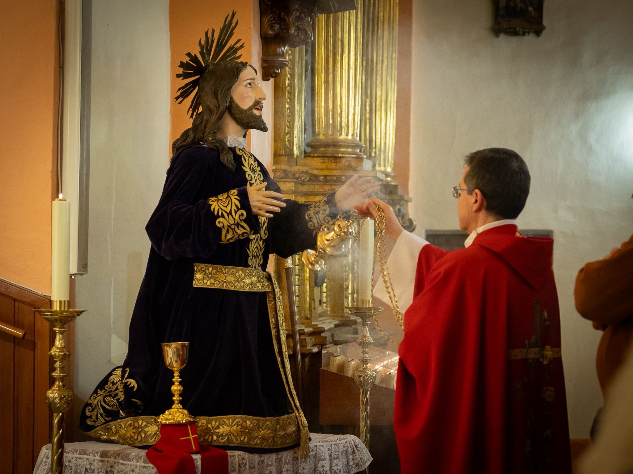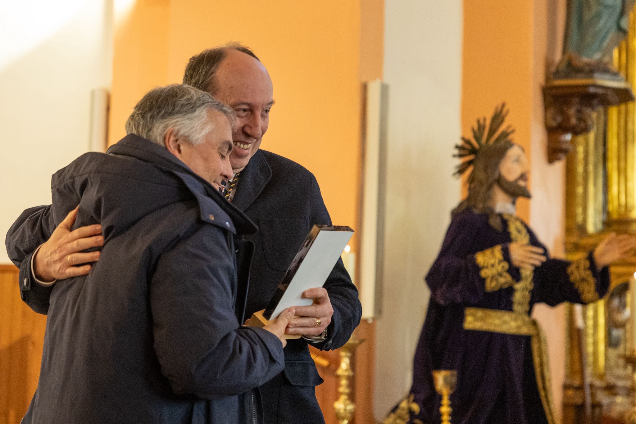 Recordó la historia humilde y perseverante de la Cofradía, nacida en el mundo obrero y ferroviario de la posguerra, y destacó la cadena intergeneracional de fidelidad que ha permitido transmitir la devoción sin estridencias ni protagonismos. El Administrador diocesano vinculó estrechamente la espiritualidad de la Oración en el Huerto con la Eucaristía, insistiendo en que velar con Cristo educa el corazón para la entrega cotidiana y para una fe coherente. Y animó a la Cofradía a vivir este aniversario no sólo como una celebración, sino como una renovación de su responsabilidad eclesial, especialmente en la transmisión del sentido profundo de la fe a las nuevas generaciones. Concluyó señalando que el verdadero testimonio no está en el hábito ni en la tradición por sí solos, sino en la capacidad de permanecer fieles cuando llega la noche, para que el Señor no quede nunca solo.