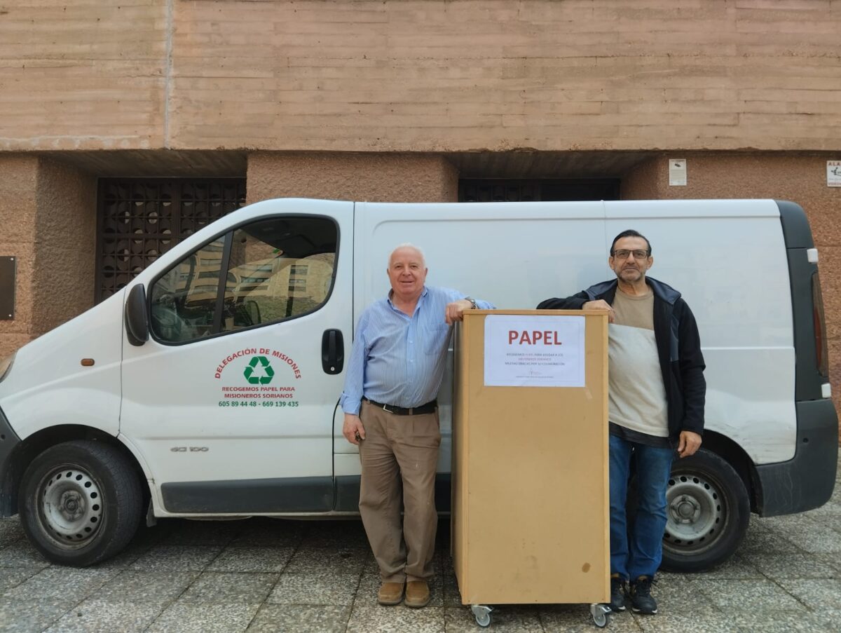 La Delegación de Misiones de Osma-Soria tiene desde hace varios años organizado este servicio de recogida y reciclaje de papel con cuya venta financia directamente varios proyectos de misioneros sorianos. Los voluntarios, ya de edad elevada, recorren la provincia recogiendo grandes volúmenes de papel en todos los puntos en los que son requeridos.