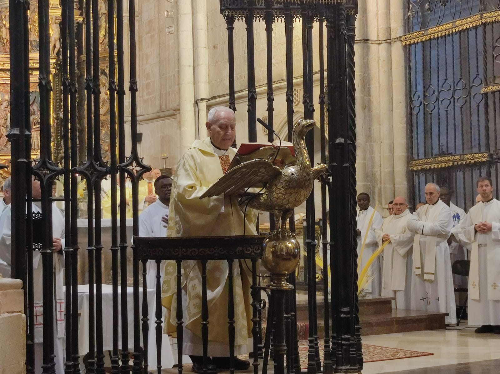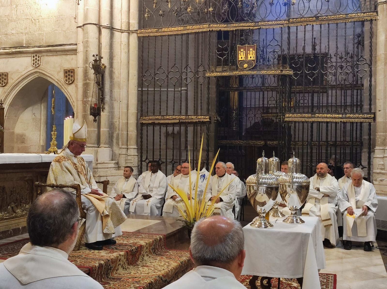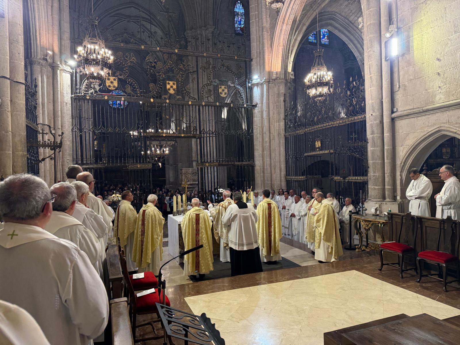 Al mediodía del Miércoles Santo, la Iglesia que peregrina en Osma-Soria celebró la Santa Misa Crismal en la Catedral de El Burgo de Osma. La solemne concelebración eucarística estuvo presidida por el Obispo Emérito de Sigüenza-Guadalajara, D. Atilano Rodríguez Martínez; con él concelebró el Administrador Diocesano, Gabriel Ángel Rodríguez Millán, la mayor parte del presbiterio diocesano y el Prior del Monasterio de Santa María de Huerta.