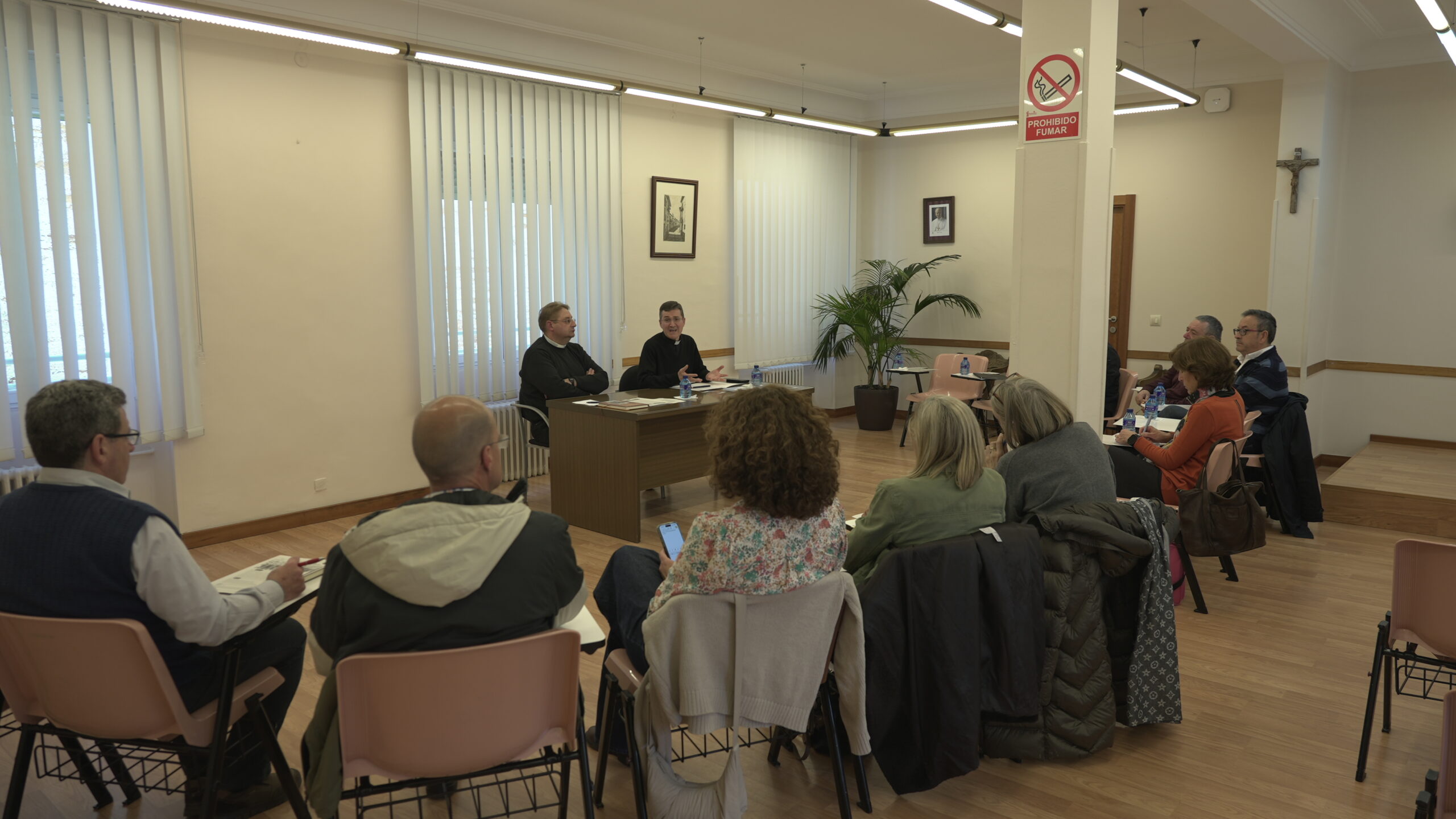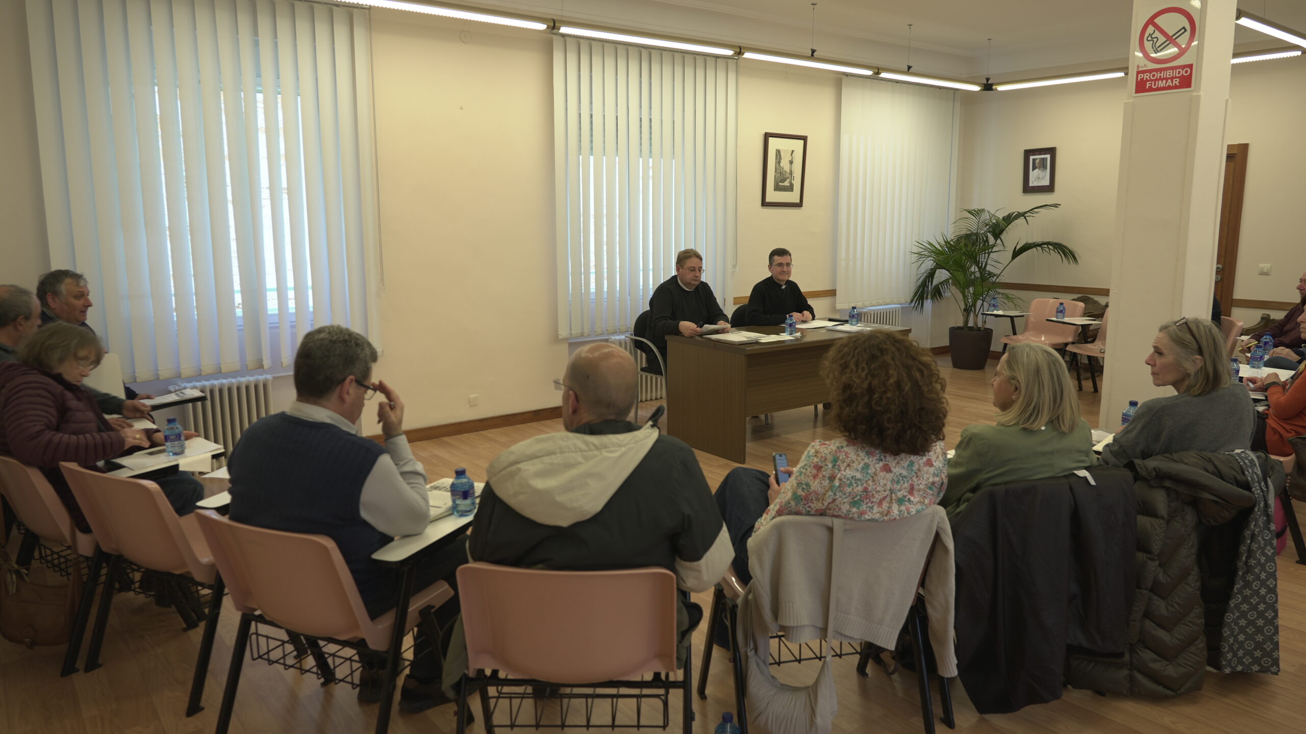 A continuación, D. Julián expuso la metodología de trabajo de la asamblea que será la conversación en el Espíritu. Glosó los tres momentos de esta, así como lo que implica cada uno. Para una fructífera participación, se repartió el material enviado por la comisión organizadora, consistente en: documento 0, fichas de trabajo 1, 2 y 3. Indicó la importancia de leer esta documentación en clima de oración antes de la cita abulense. La mencionada documentación recoge las aportaciones de las nueve diócesis implicadas. Finalmente se dieron algunas indicaciones de carácter práctico. Todos los asistentes se mostraron expectantes ante su participación en la asamblea.