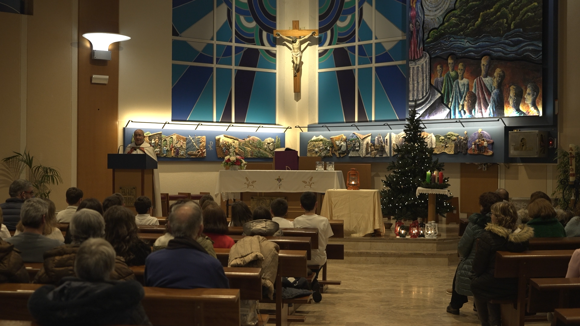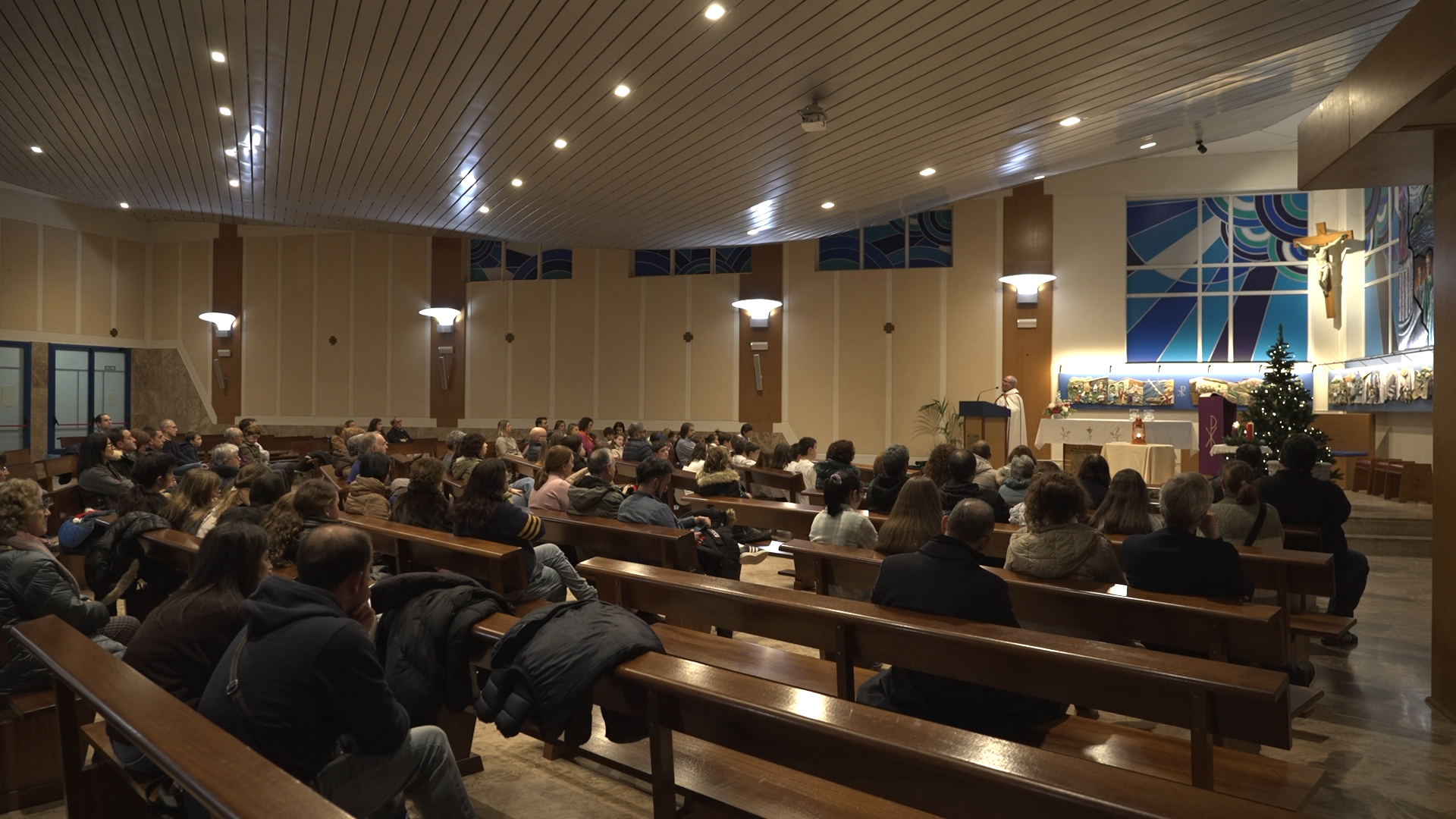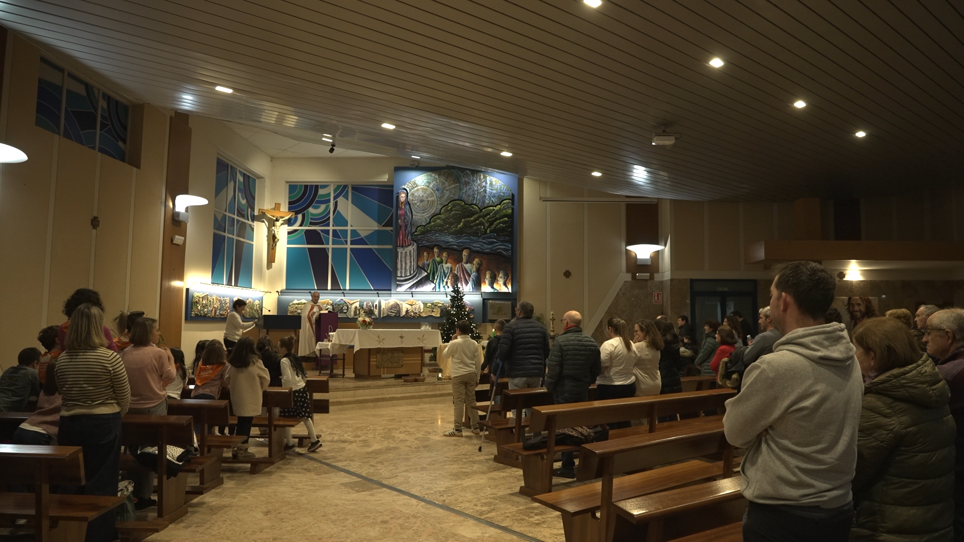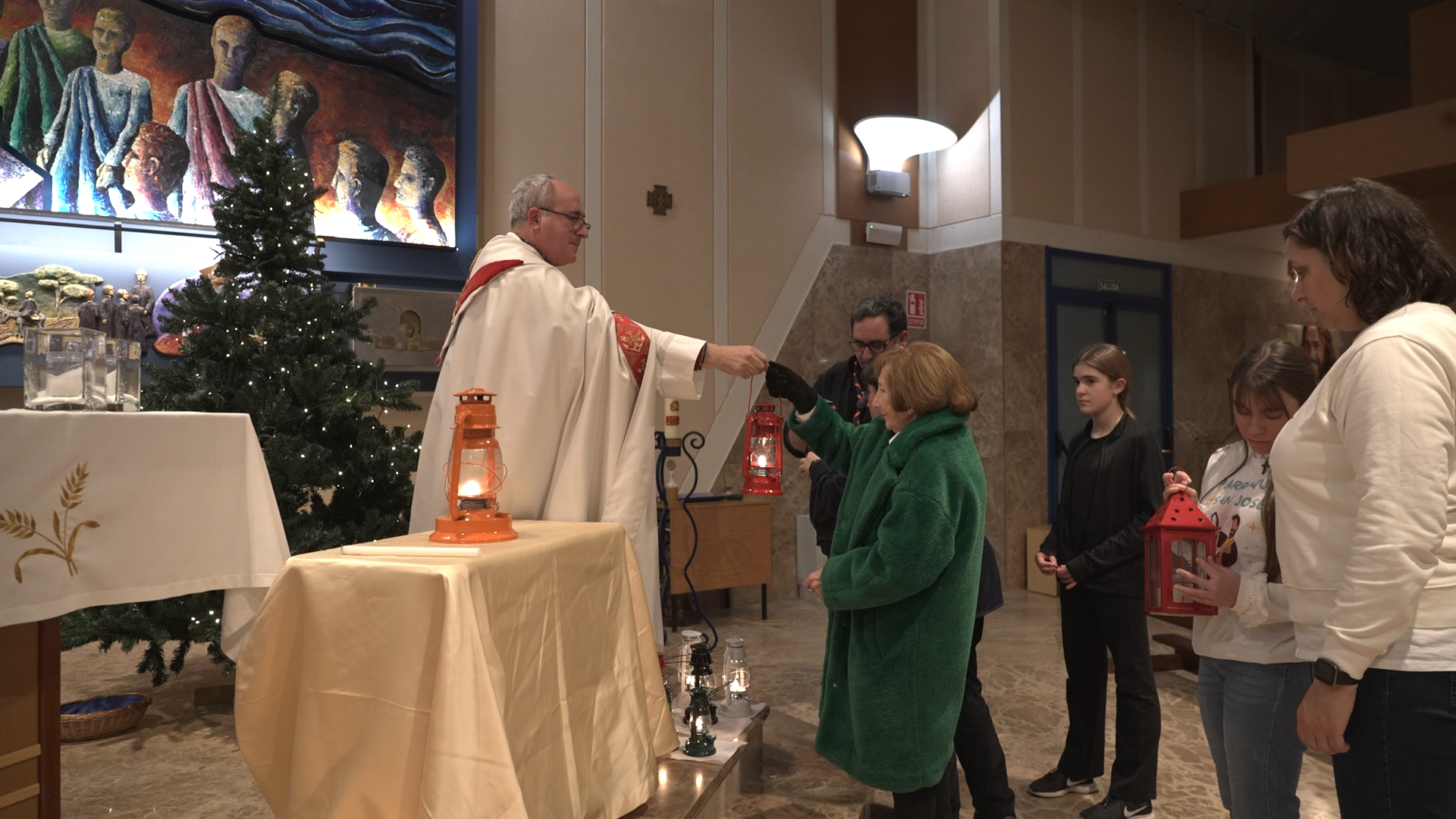 Terminado el festival de villancicos, pasaron a la Iglesia para celebrar y enviar a todos los presentes a seguir anunciando lo visto y oído portando LA LUZ DE LA PAZ DE BELEN hasta parroquias, pueblos, centros educativos y familias y deseando a todos una muy Feliz Navidad.
