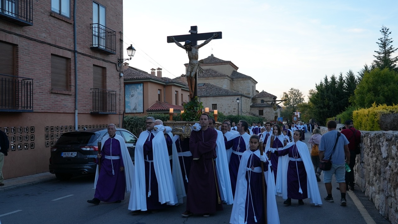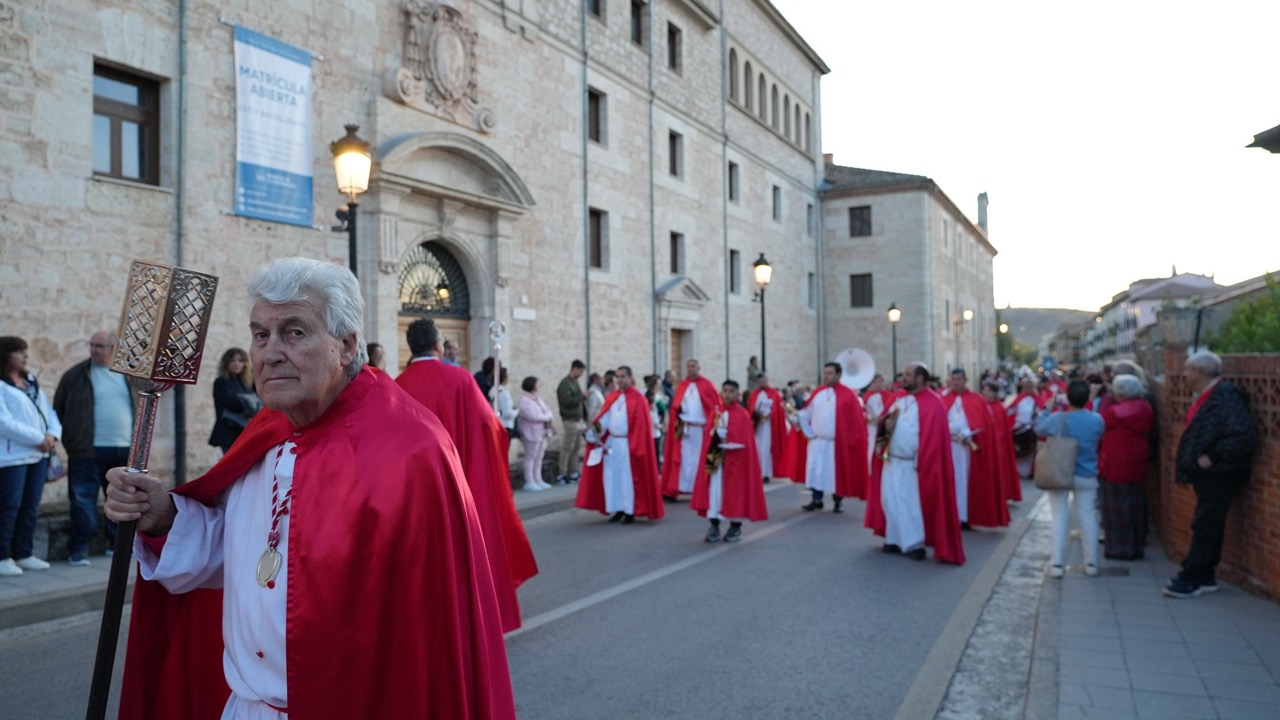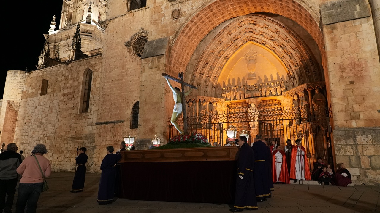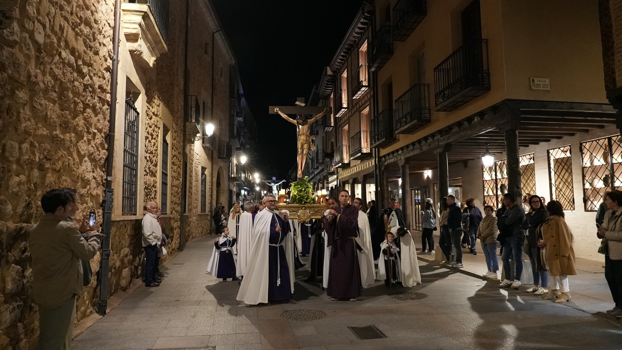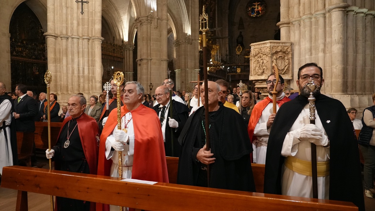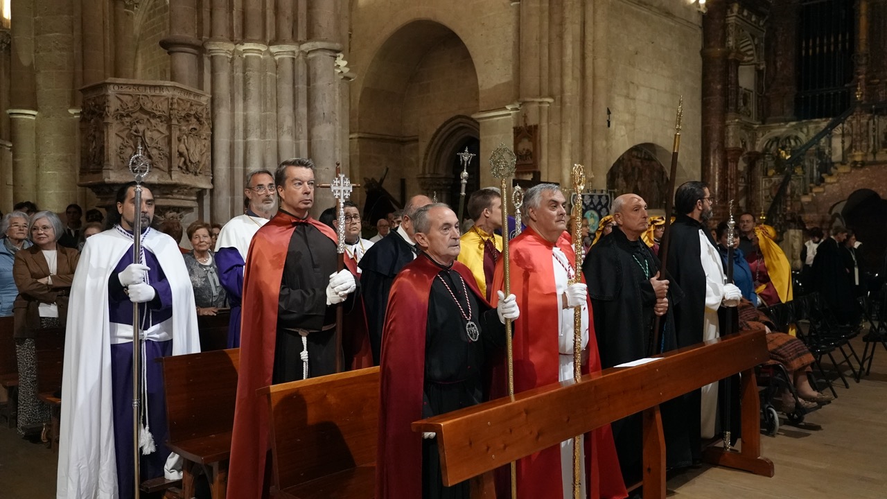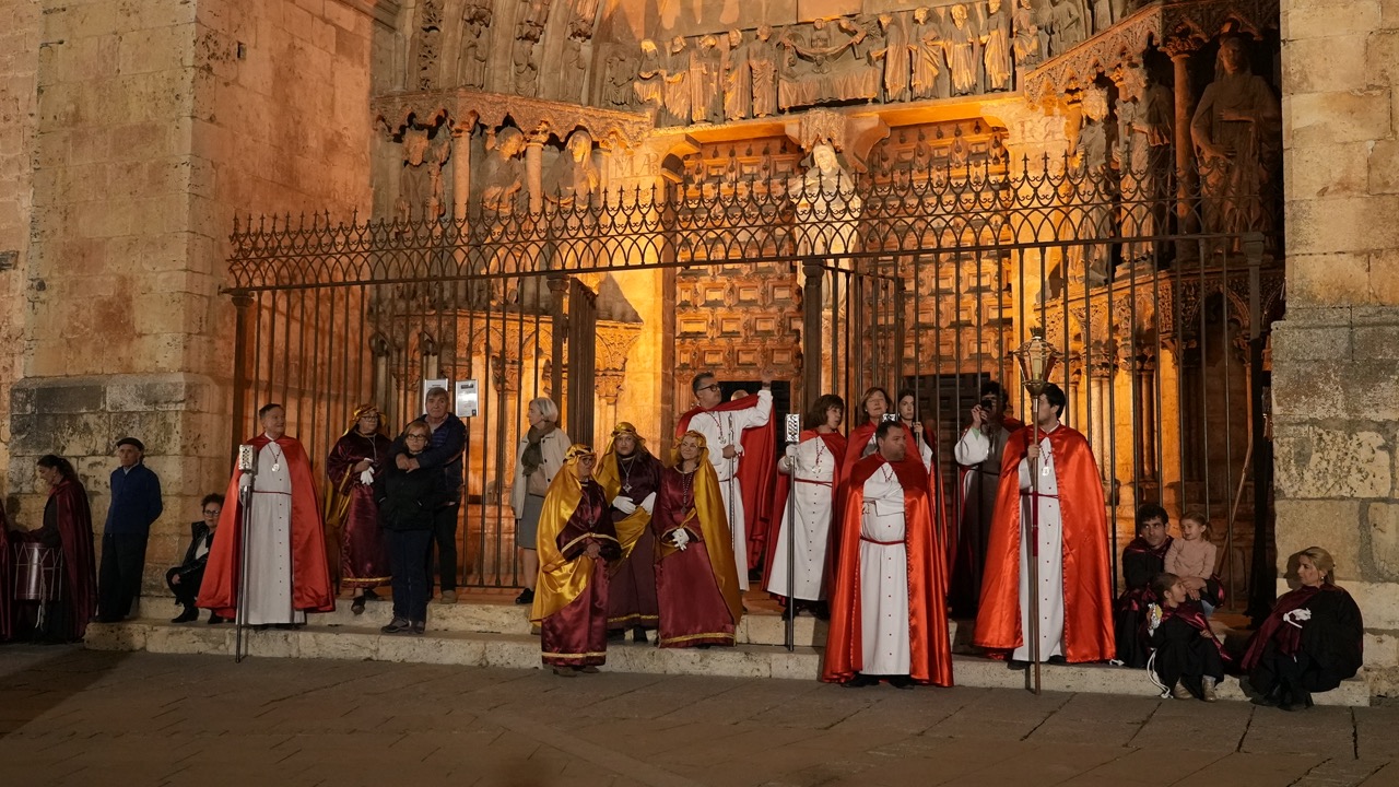 La actividad oficial ha comenzado a las seis de la tarde en la iglesia del Carmen con un acto penitencial necesario para ganar el Jubileo. Tras él, partía la procesión por las calles burgenses pasando por el Seminario, plaza Mayor y calle Mayor antes de desembocar en la plaza de la Catedral y entrar el templo por la puerta de San Miguel. El Administrador diocesano de Osma-Soria, Gabriel Ángel Rodríguez Millán, ha presidido una emotiva eucaristía en la que ha destacado el papel de las cofradías como custodias vivas de la fe y la esperanza en los pueblos de la diócesis. En su homilía, subrayaba que “la victoria del pueblo de Dios no depende de la fuerza, sino de la fe”, invitando a los cofrades a ser “oración en movimiento” y testigos alegres del Evangelio en medio del mundo. El Administrador alentó a redescubrir la esencia del Evangelio, a perseverar en la oración y a vivir con confianza y esperanza, recordando que “Cristo no vino a buscar perfectos, sino a levantar al que cayó y encender la llama en el que ya no creía”.