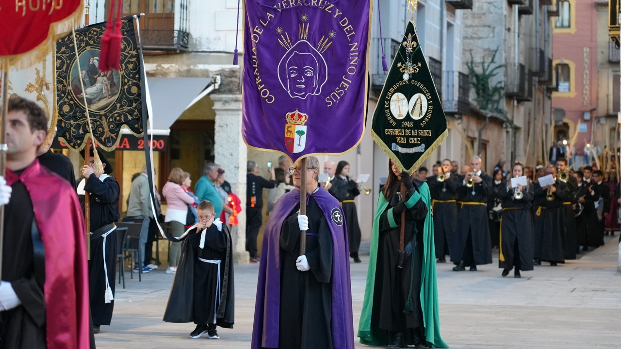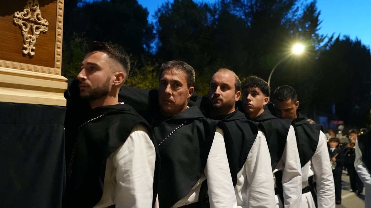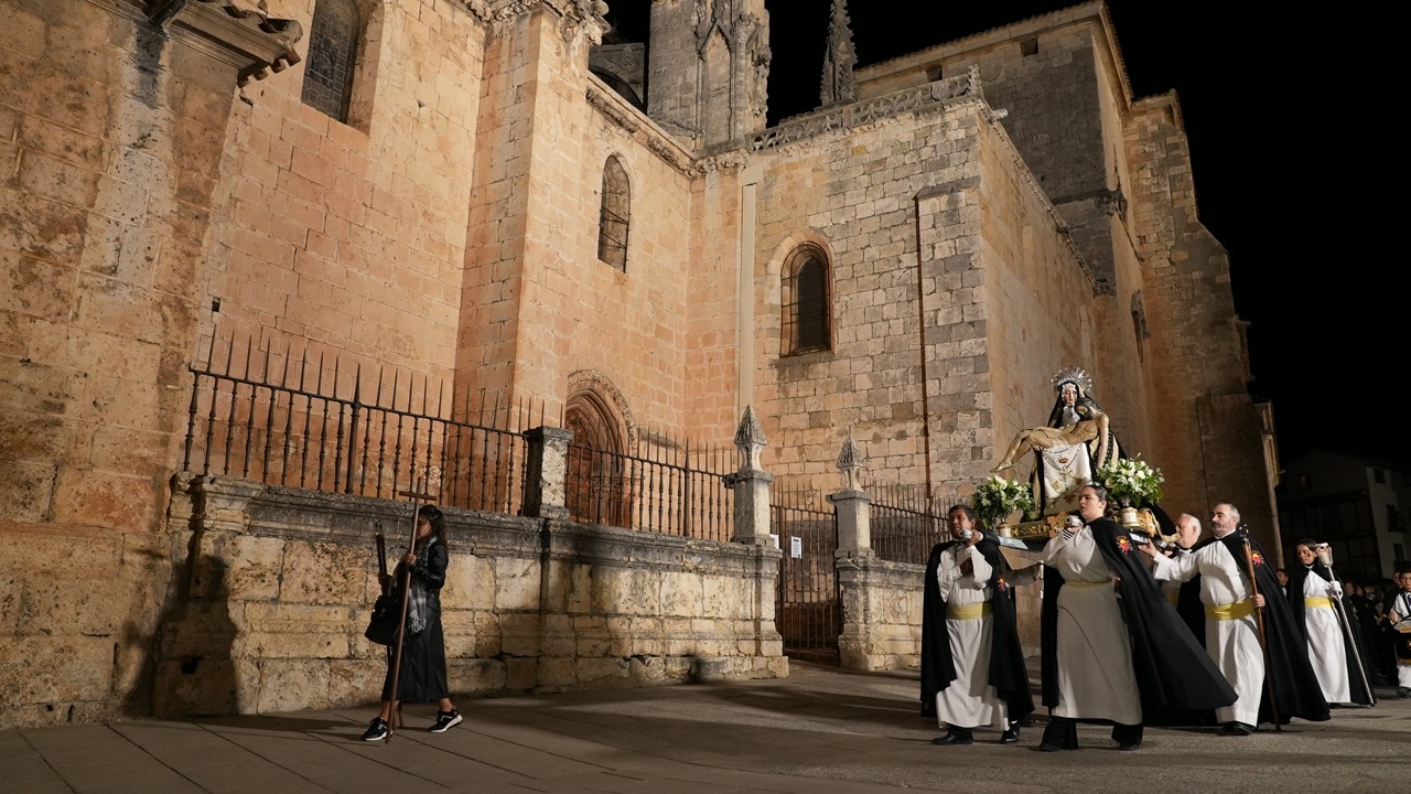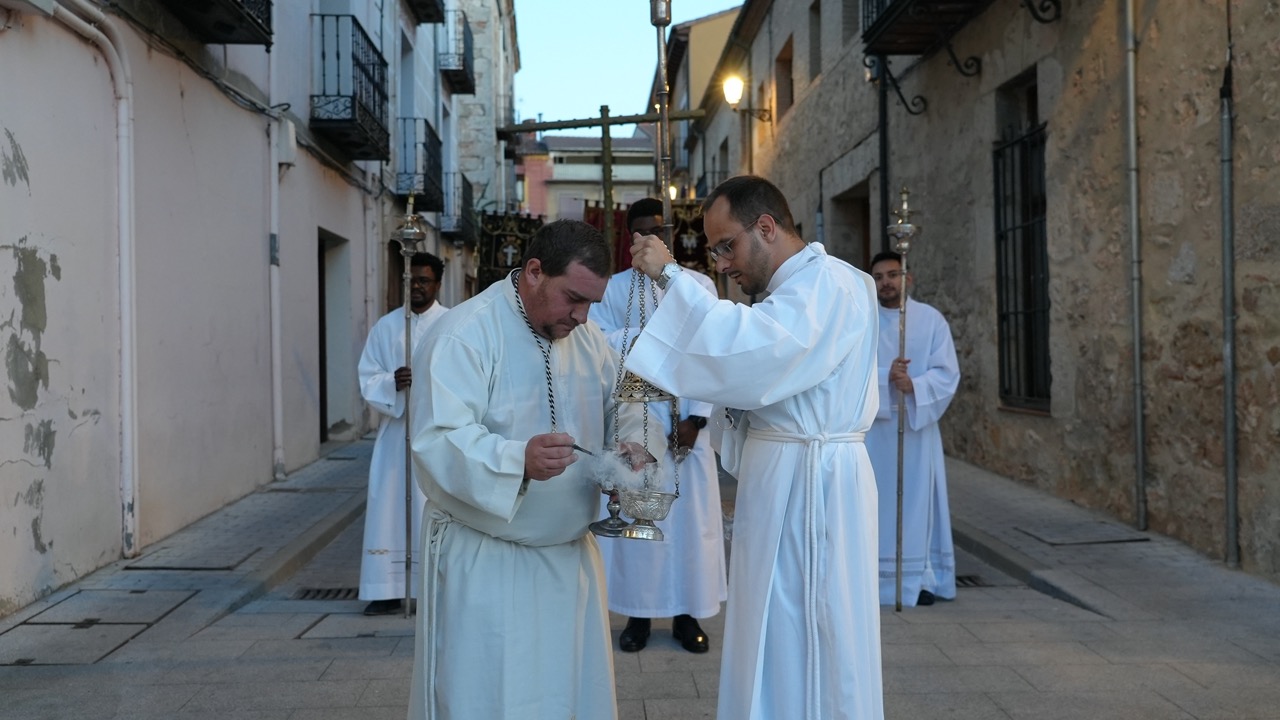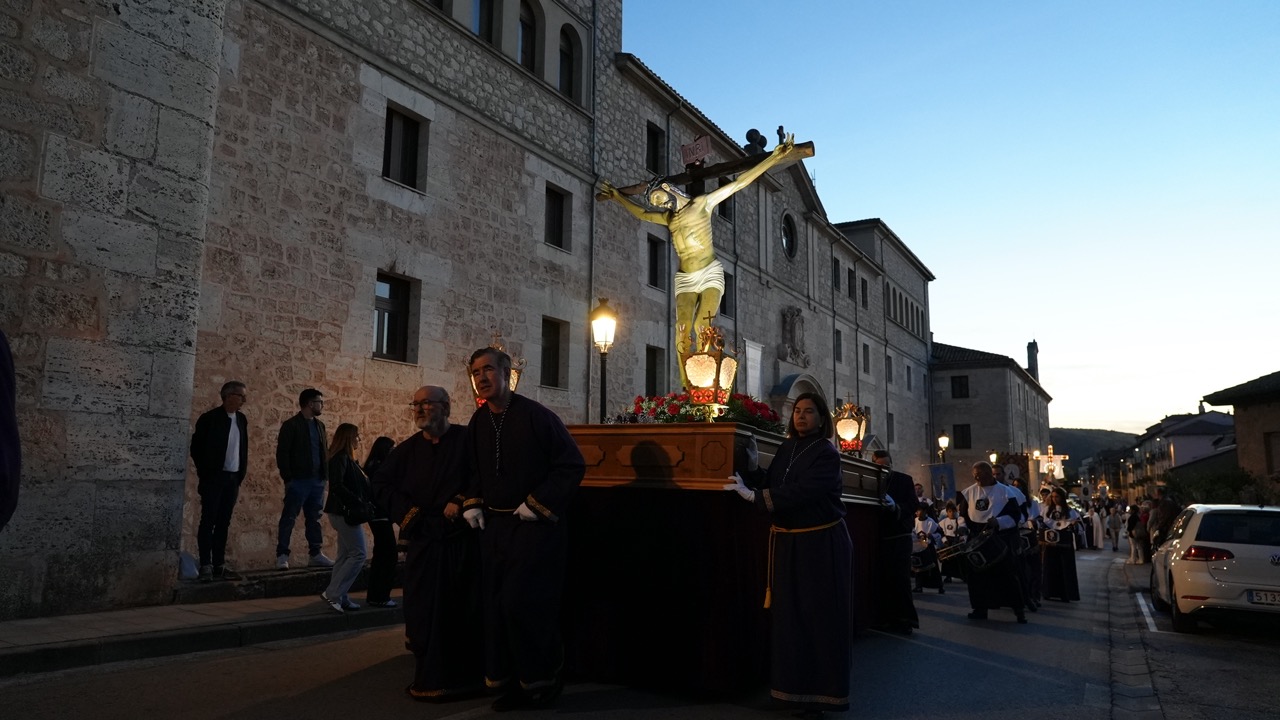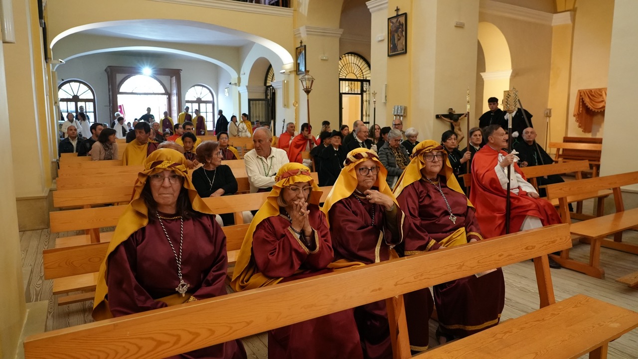 La actividad oficial ha comenzado a las seis de la tarde en la iglesia del Carmen con un acto penitencial necesario para ganar el Jubileo. Tras él, partía la procesión por las calles burgenses pasando por el Seminario, plaza Mayor y calle Mayor antes de desembocar en la plaza de la Catedral y entrar el templo por la puerta de San Miguel. El Administrador diocesano de Osma-Soria, Gabriel Ángel Rodríguez Millán, ha presidido una emotiva eucaristía en la que ha destacado el papel de las cofradías como custodias vivas de la fe y la esperanza en los pueblos de la diócesis. En su homilía, subrayaba que “la victoria del pueblo de Dios no depende de la fuerza, sino de la fe”, invitando a los cofrades a ser “oración en movimiento” y testigos alegres del Evangelio en medio del mundo. El Administrador alentó a redescubrir la esencia del Evangelio, a perseverar en la oración y a vivir con confianza y esperanza, recordando que “Cristo no vino a buscar perfectos, sino a levantar al que cayó y encender la llama en el que ya no creía”.