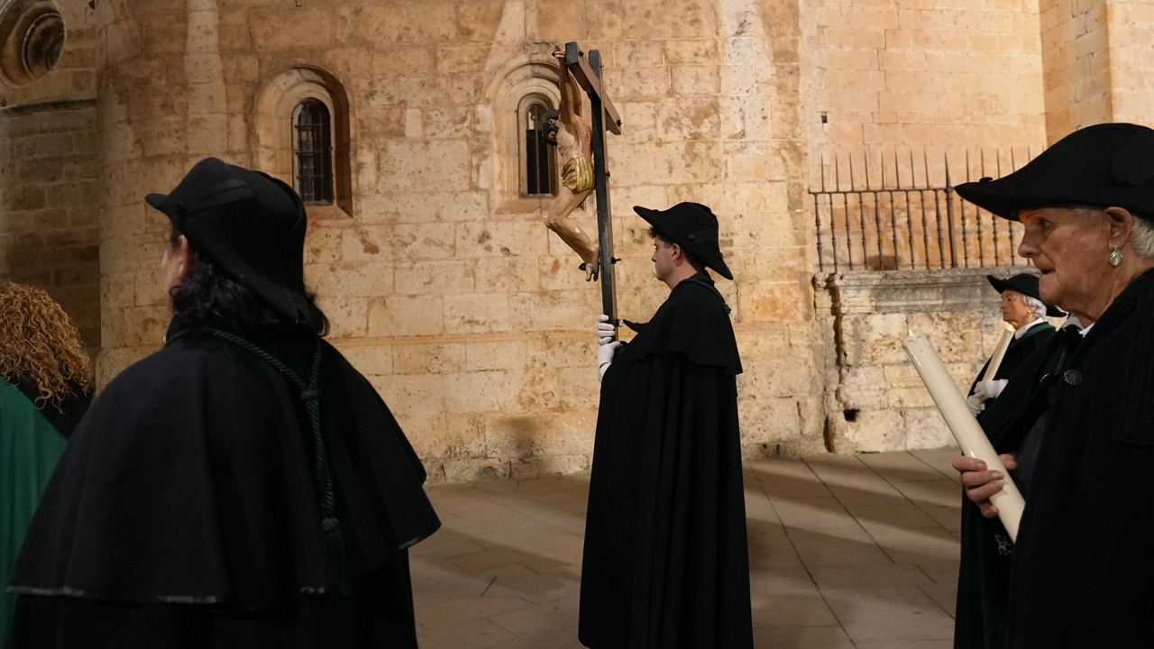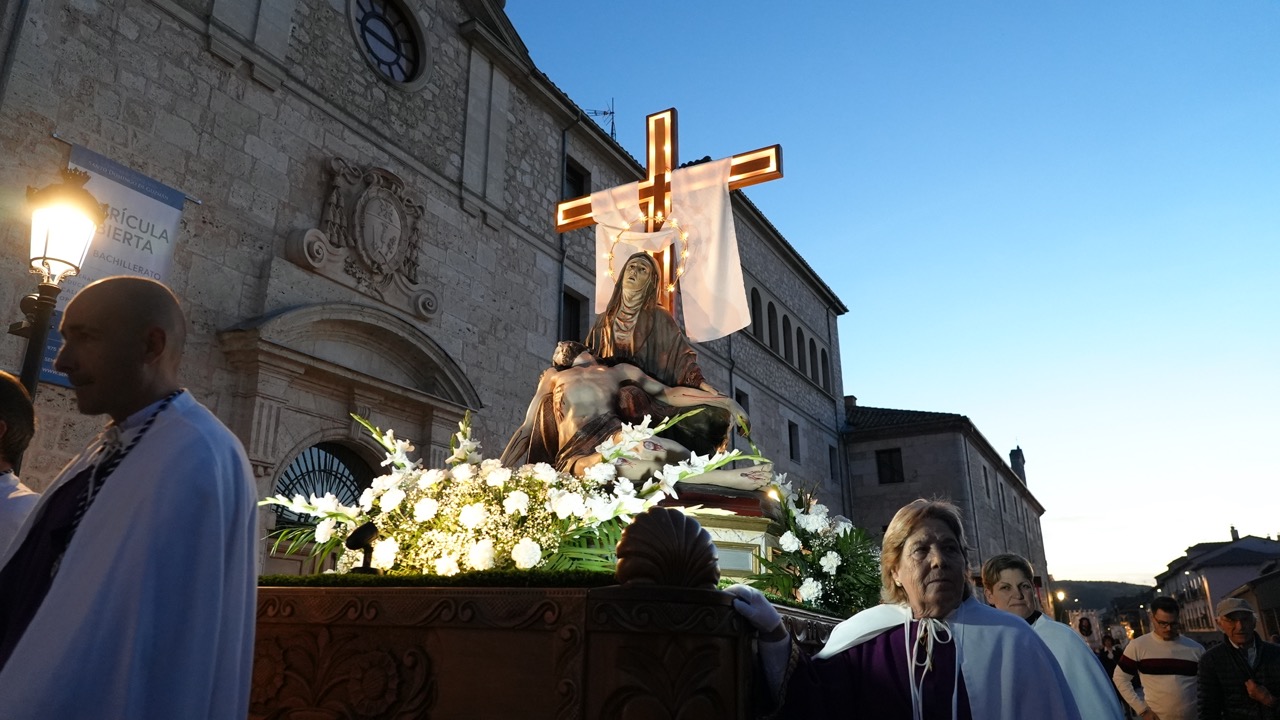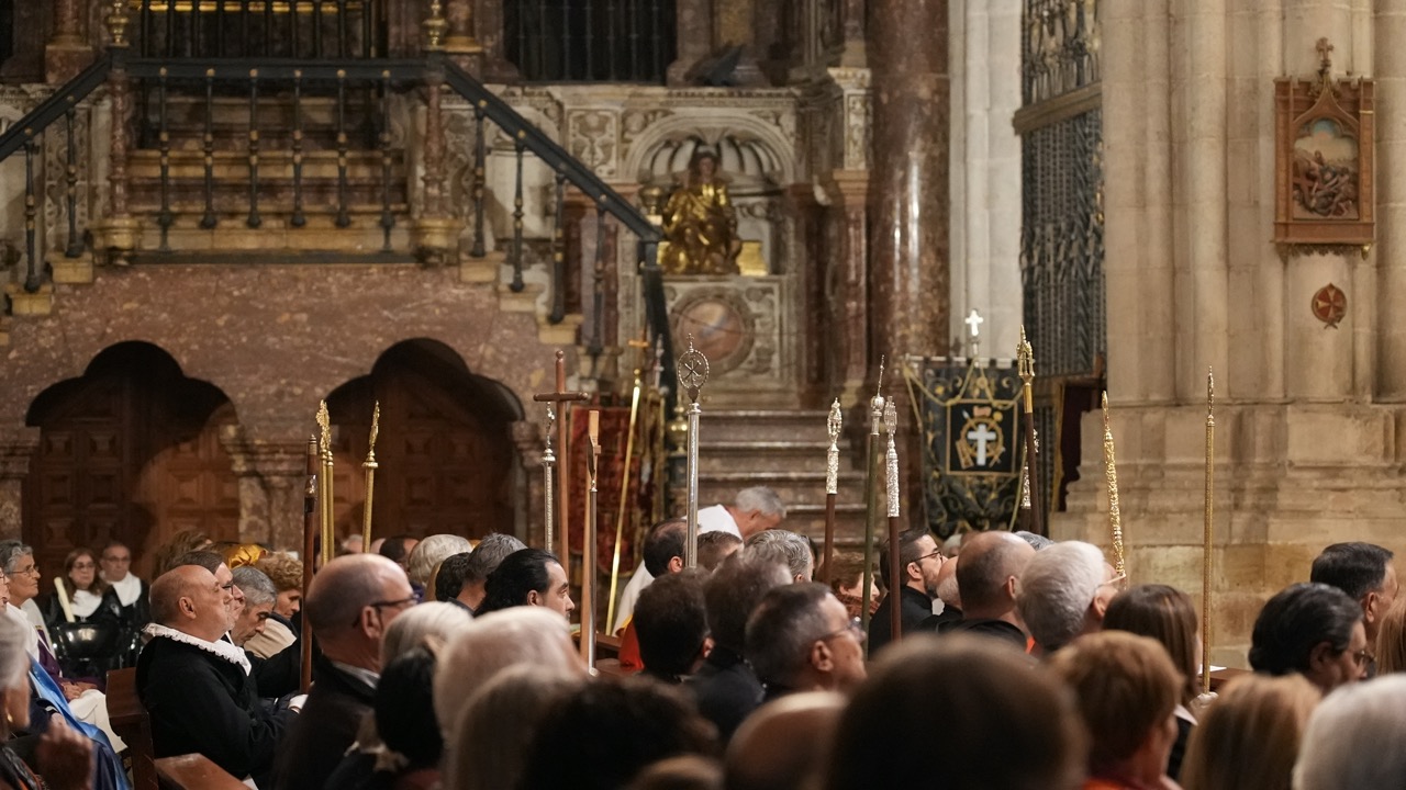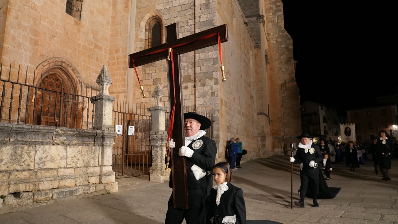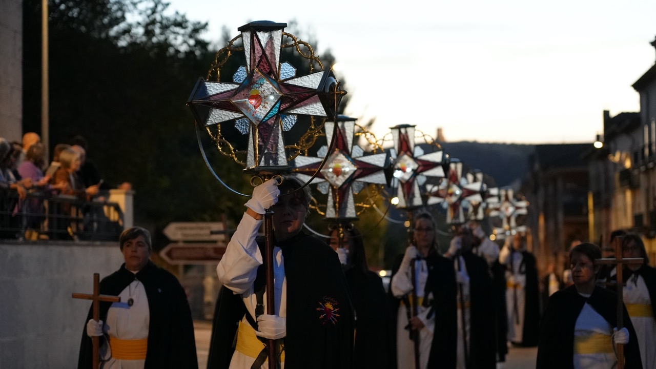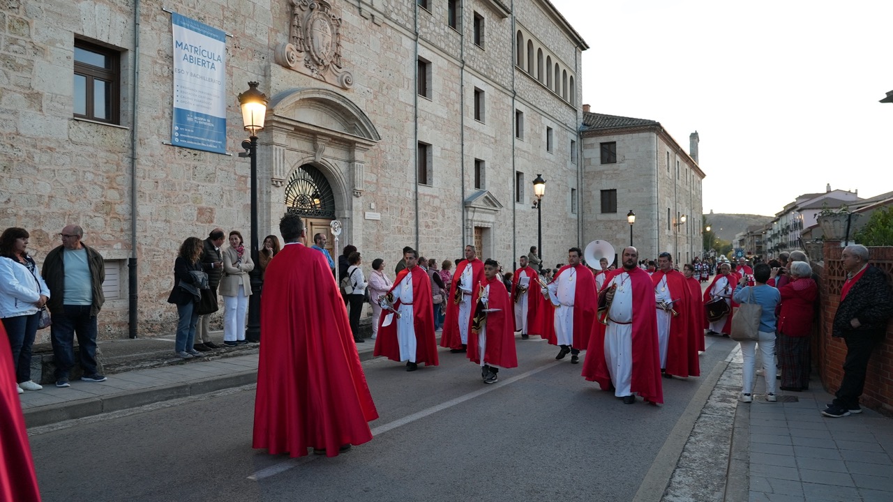 La actividad oficial ha comenzado a las seis de la tarde en la iglesia del Carmen con un acto penitencial necesario para ganar el Jubileo. Tras él, partía la procesión por las calles burgenses pasando por el Seminario, plaza Mayor y calle Mayor antes de desembocar en la plaza de la Catedral y entrar el templo por la puerta de San Miguel. El Administrador diocesano de Osma-Soria, Gabriel Ángel Rodríguez Millán, ha presidido una emotiva eucaristía en la que ha destacado el papel de las cofradías como custodias vivas de la fe y la esperanza en los pueblos de la diócesis. En su homilía, subrayaba que “la victoria del pueblo de Dios no depende de la fuerza, sino de la fe”, invitando a los cofrades a ser “oración en movimiento” y testigos alegres del Evangelio en medio del mundo. El Administrador alentó a redescubrir la esencia del Evangelio, a perseverar en la oración y a vivir con confianza y esperanza, recordando que “Cristo no vino a buscar perfectos, sino a levantar al que cayó y encender la llama en el que ya no creía”.