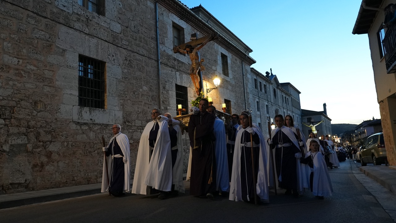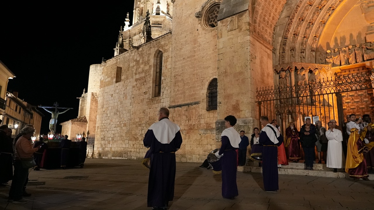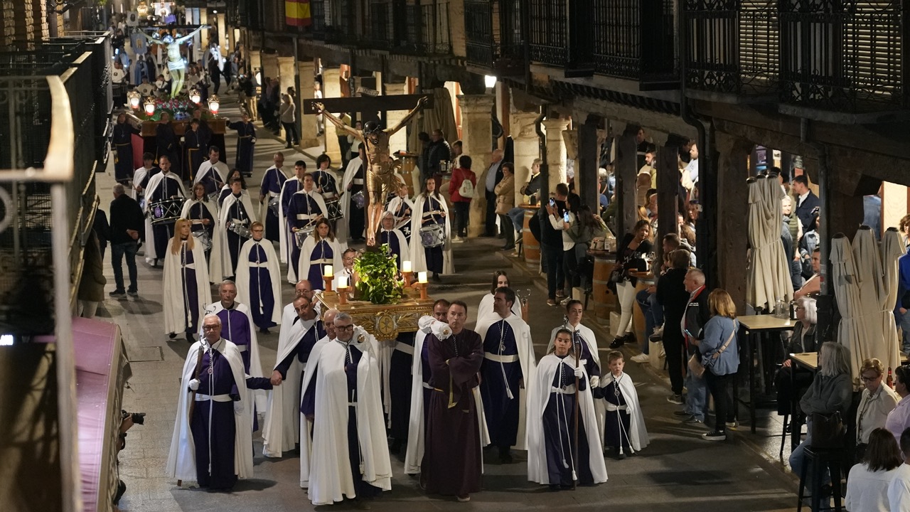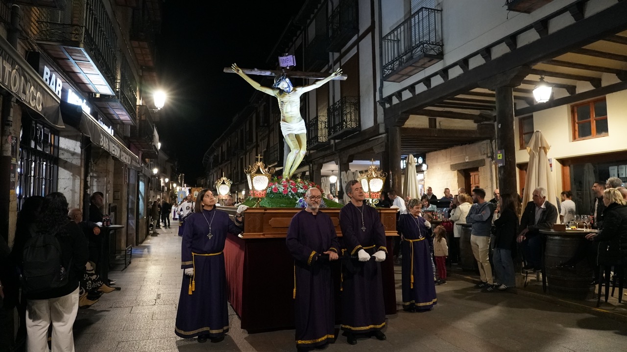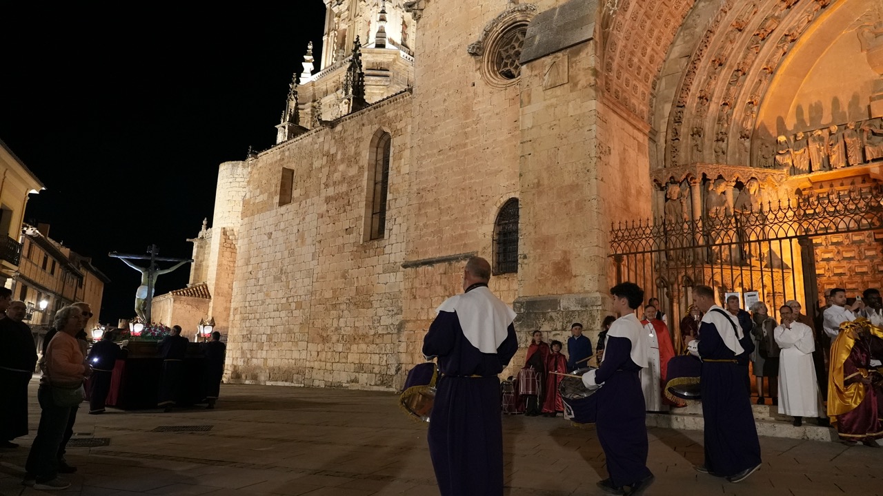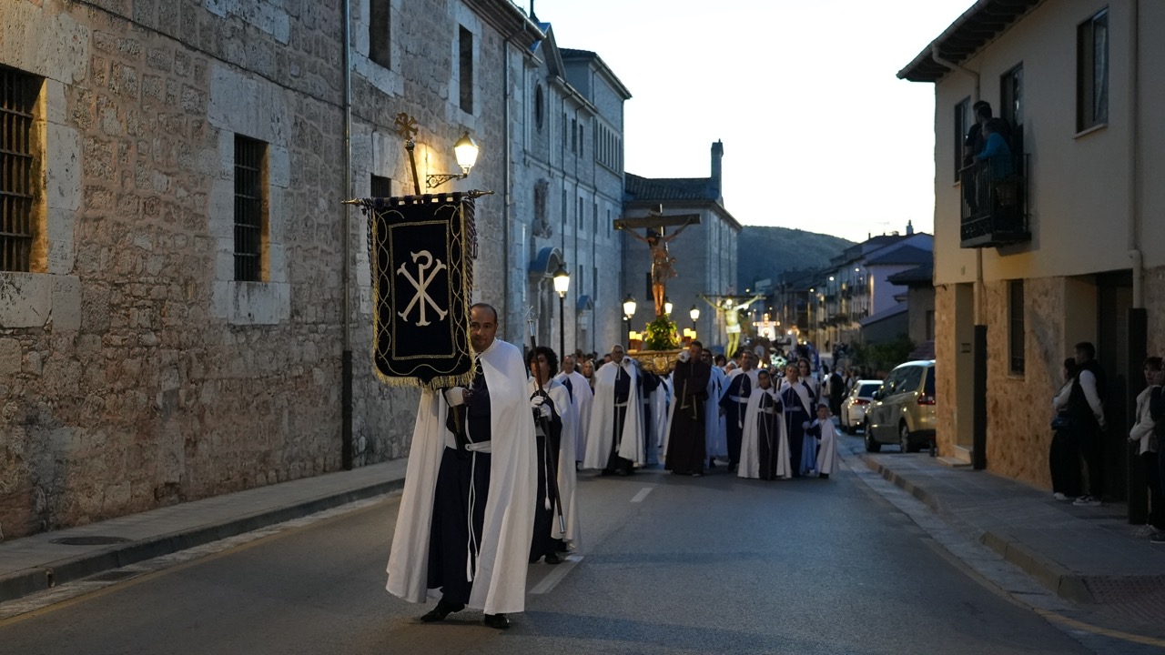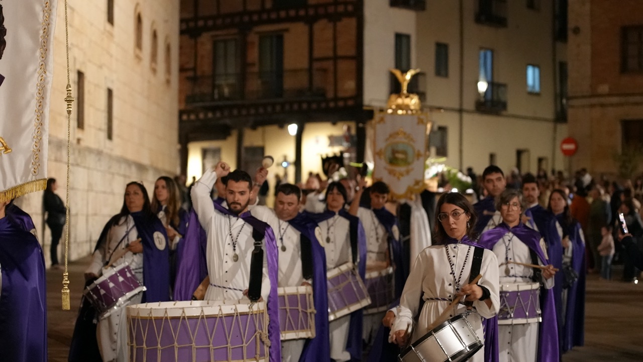 La actividad oficial ha comenzado a las seis de la tarde en la iglesia del Carmen con un acto penitencial necesario para ganar el Jubileo. Tras él, partía la procesión por las calles burgenses pasando por el Seminario, plaza Mayor y calle Mayor antes de desembocar en la plaza de la Catedral y entrar el templo por la puerta de San Miguel. El Administrador diocesano de Osma-Soria, Gabriel Ángel Rodríguez Millán, ha presidido una emotiva eucaristía en la que ha destacado el papel de las cofradías como custodias vivas de la fe y la esperanza en los pueblos de la diócesis. En su homilía, subrayaba que “la victoria del pueblo de Dios no depende de la fuerza, sino de la fe”, invitando a los cofrades a ser “oración en movimiento” y testigos alegres del Evangelio en medio del mundo. El Administrador alentó a redescubrir la esencia del Evangelio, a perseverar en la oración y a vivir con confianza y esperanza, recordando que “Cristo no vino a buscar perfectos, sino a levantar al que cayó y encender la llama en el que ya no creía”.