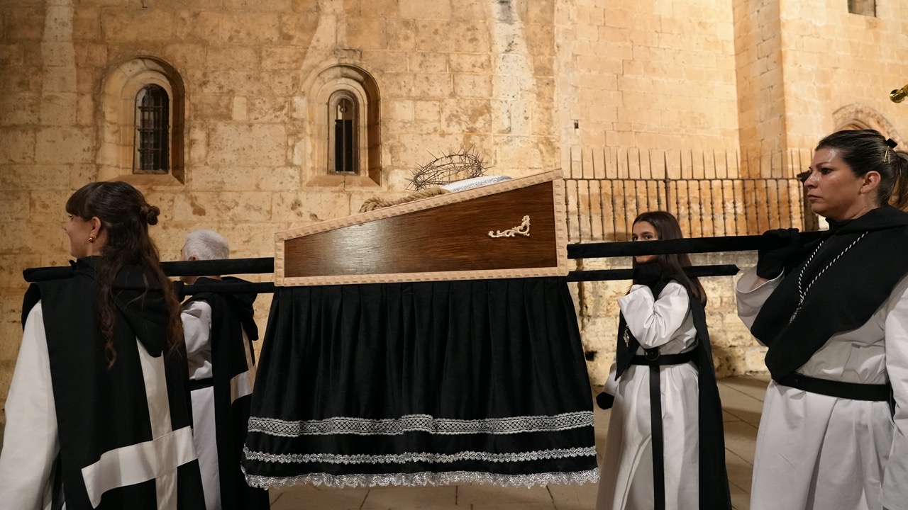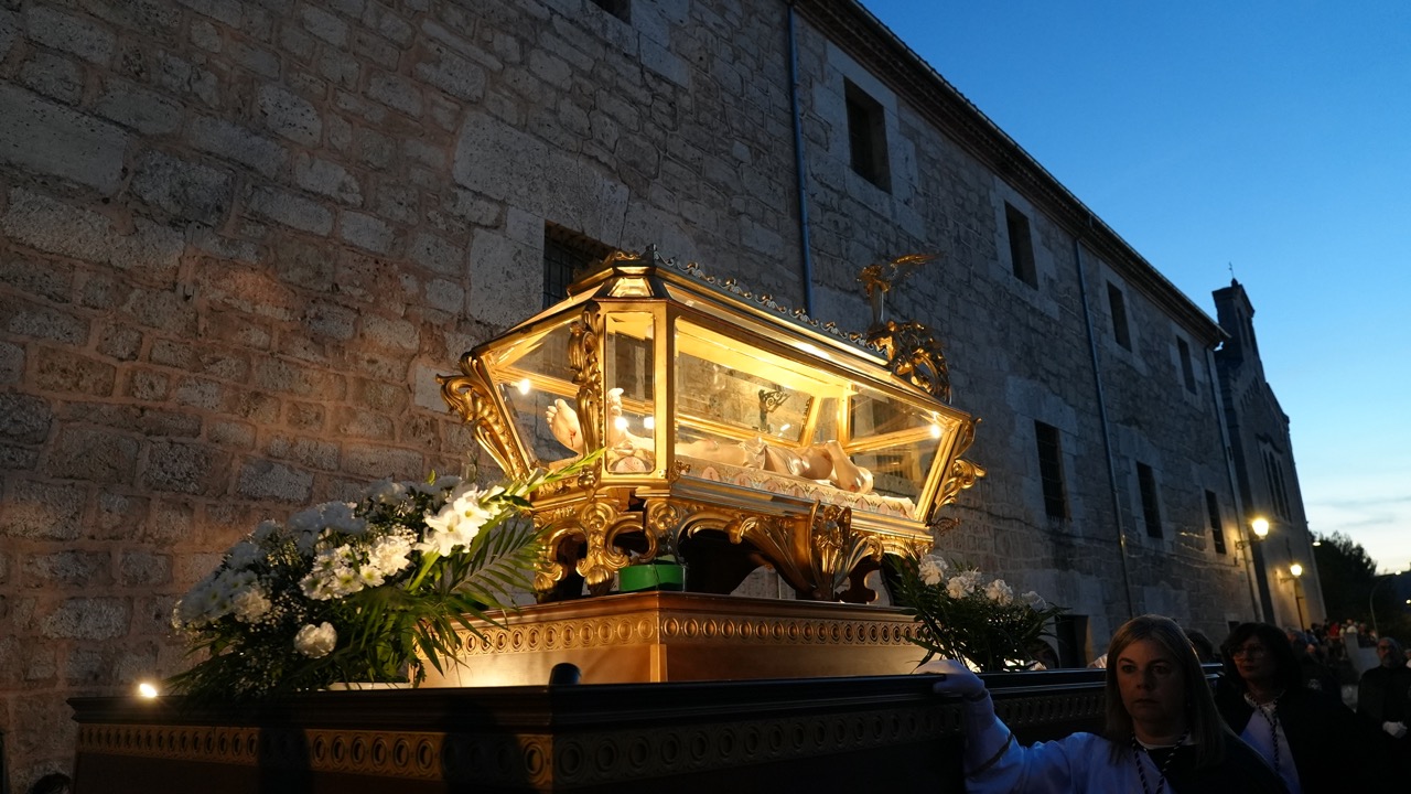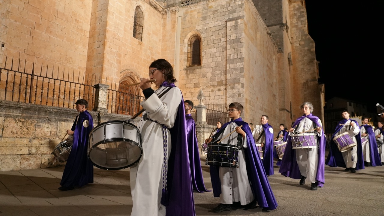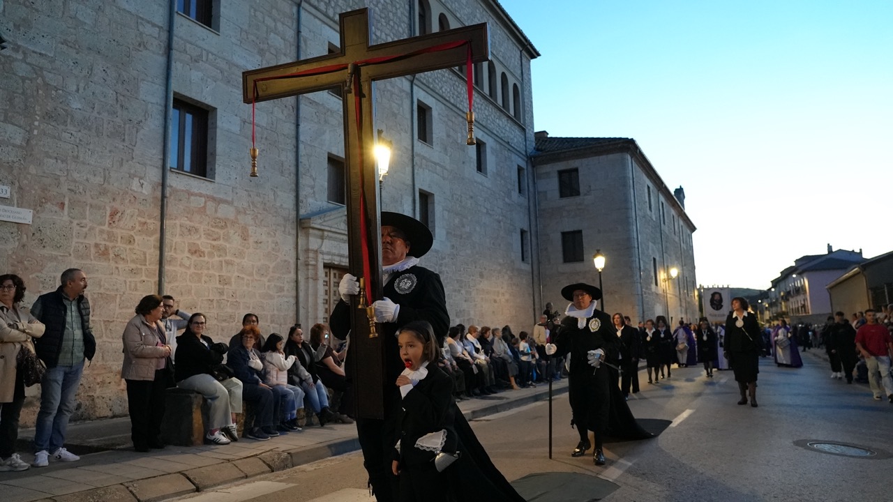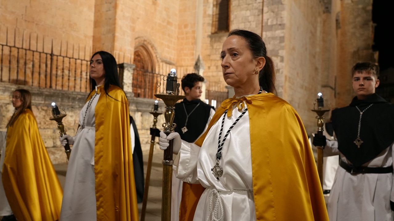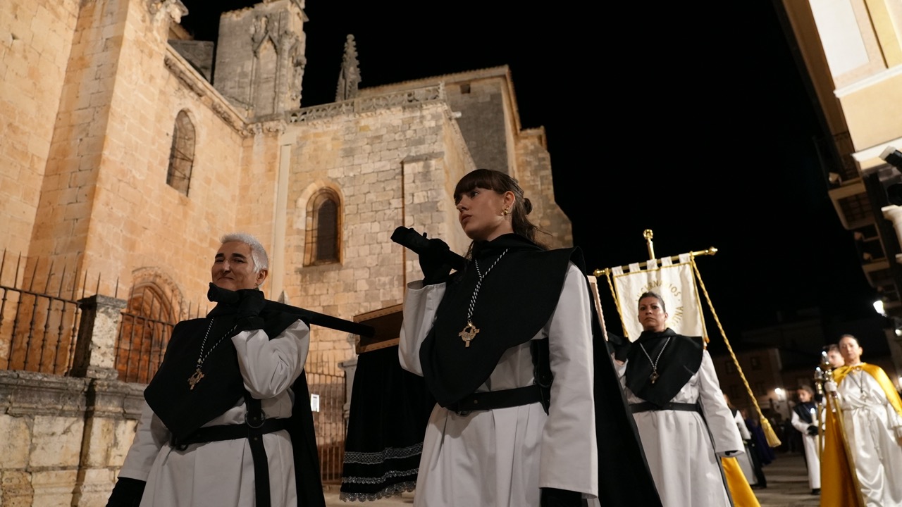 La actividad oficial ha comenzado a las seis de la tarde en la iglesia del Carmen con un acto penitencial necesario para ganar el Jubileo. Tras él, partía la procesión por las calles burgenses pasando por el Seminario, plaza Mayor y calle Mayor antes de desembocar en la plaza de la Catedral y entrar el templo por la puerta de San Miguel. El Administrador diocesano de Osma-Soria, Gabriel Ángel Rodríguez Millán, ha presidido una emotiva eucaristía en la que ha destacado el papel de las cofradías como custodias vivas de la fe y la esperanza en los pueblos de la diócesis. En su homilía, subrayaba que “la victoria del pueblo de Dios no depende de la fuerza, sino de la fe”, invitando a los cofrades a ser “oración en movimiento” y testigos alegres del Evangelio en medio del mundo. El Administrador alentó a redescubrir la esencia del Evangelio, a perseverar en la oración y a vivir con confianza y esperanza, recordando que “Cristo no vino a buscar perfectos, sino a levantar al que cayó y encender la llama en el que ya no creía”.