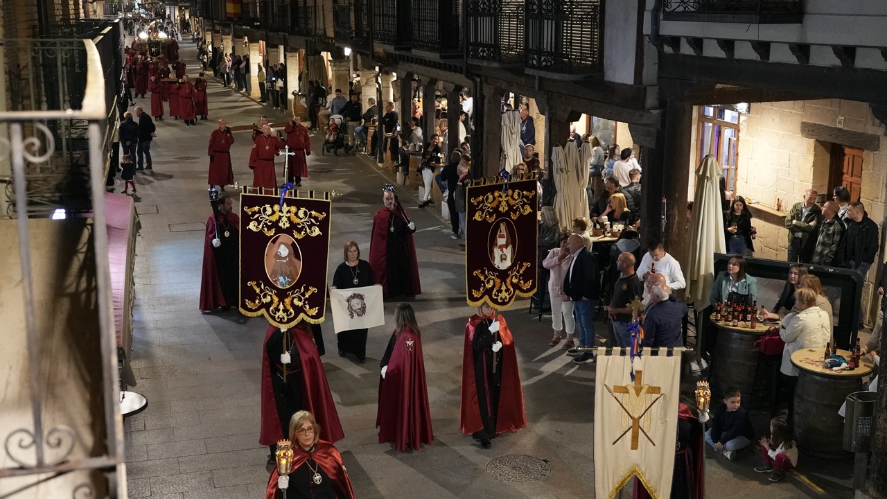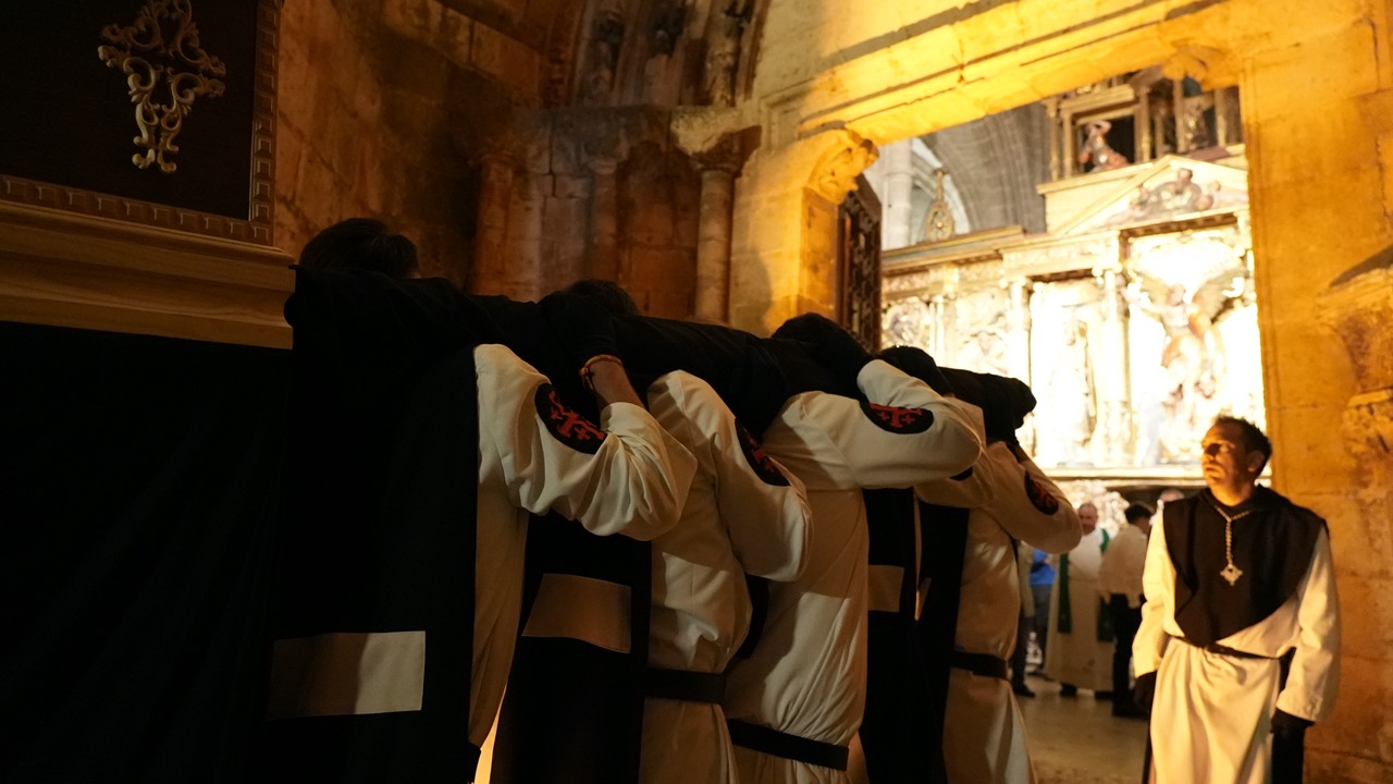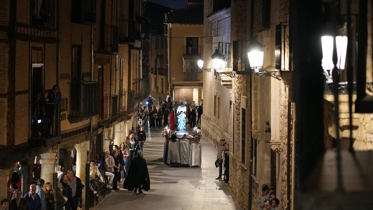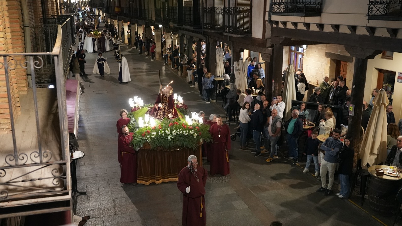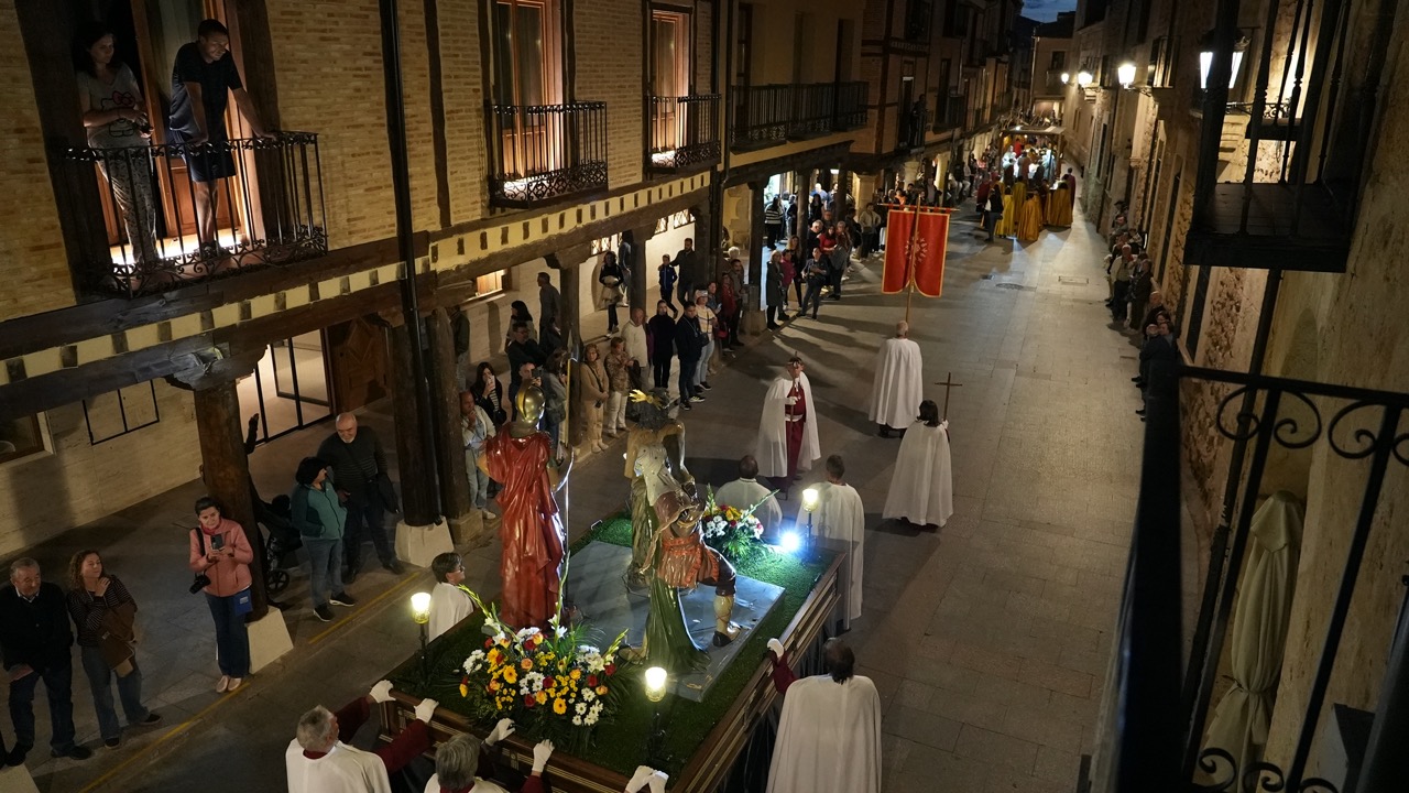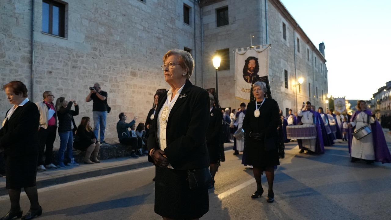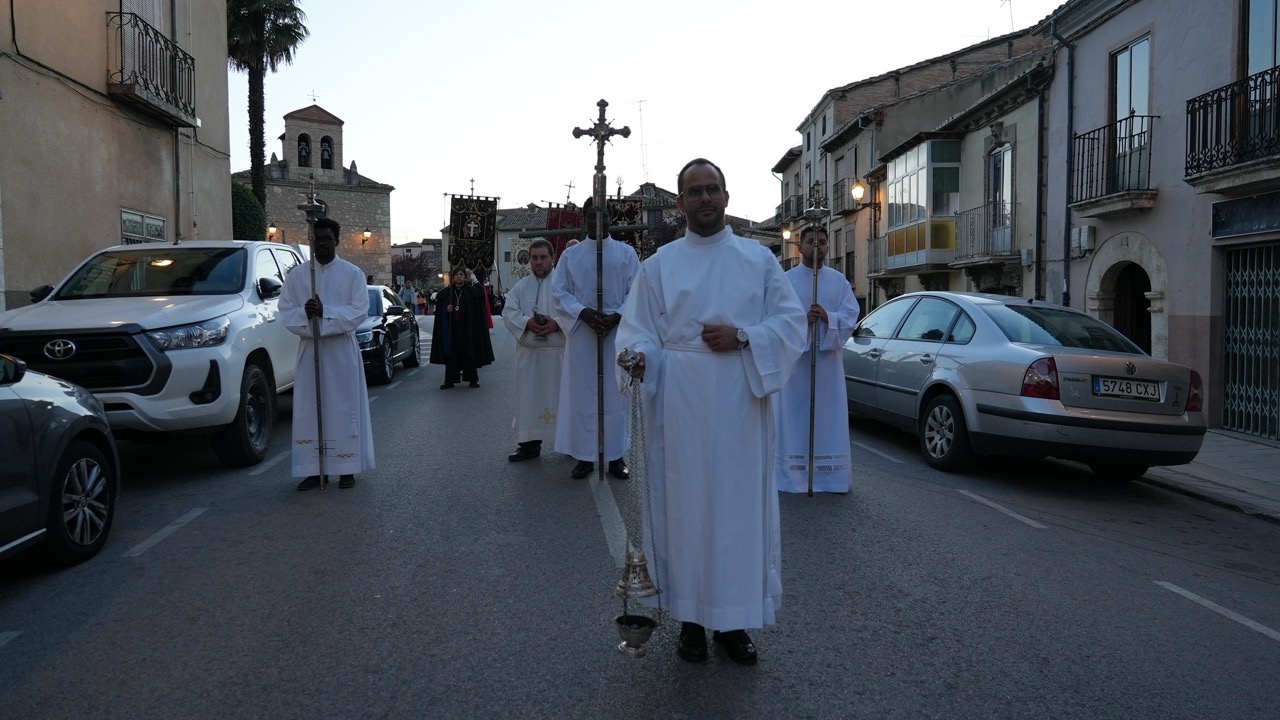 La actividad oficial ha comenzado a las seis de la tarde en la iglesia del Carmen con un acto penitencial necesario para ganar el Jubileo. Tras él, partía la procesión por las calles burgenses pasando por el Seminario, plaza Mayor y calle Mayor antes de desembocar en la plaza de la Catedral y entrar el templo por la puerta de San Miguel. El Administrador diocesano de Osma-Soria, Gabriel Ángel Rodríguez Millán, ha presidido una emotiva eucaristía en la que ha destacado el papel de las cofradías como custodias vivas de la fe y la esperanza en los pueblos de la diócesis. En su homilía, subrayaba que “la victoria del pueblo de Dios no depende de la fuerza, sino de la fe”, invitando a los cofrades a ser “oración en movimiento” y testigos alegres del Evangelio en medio del mundo. El Administrador alentó a redescubrir la esencia del Evangelio, a perseverar en la oración y a vivir con confianza y esperanza, recordando que “Cristo no vino a buscar perfectos, sino a levantar al que cayó y encender la llama en el que ya no creía”.