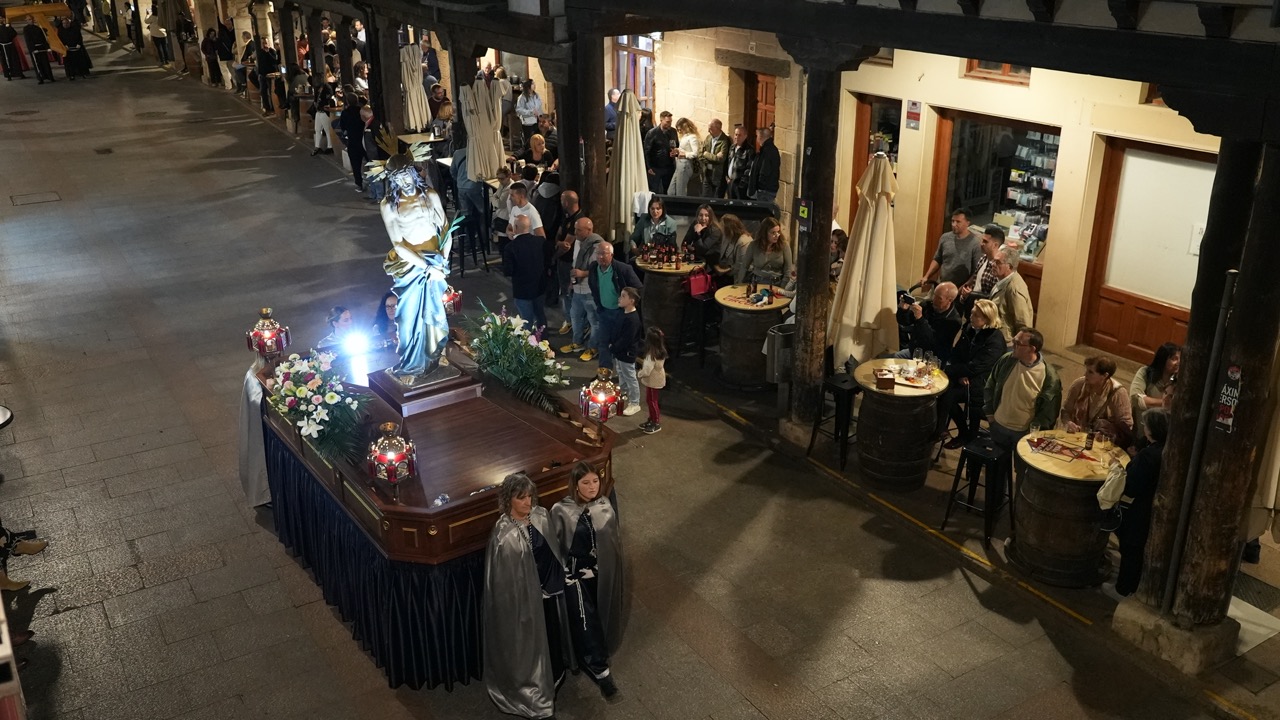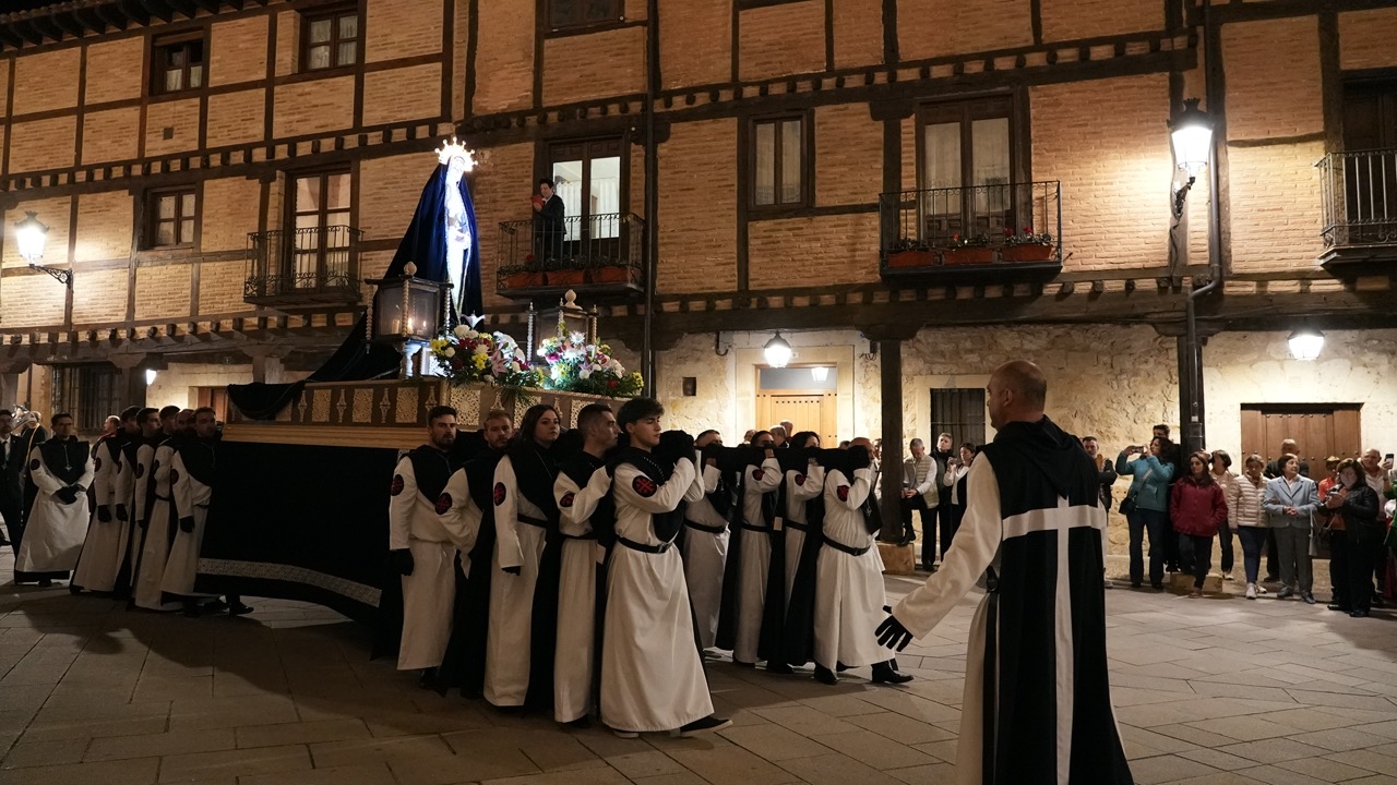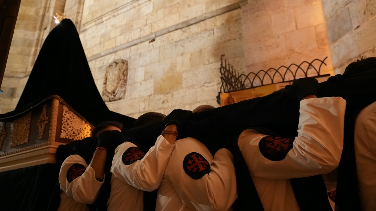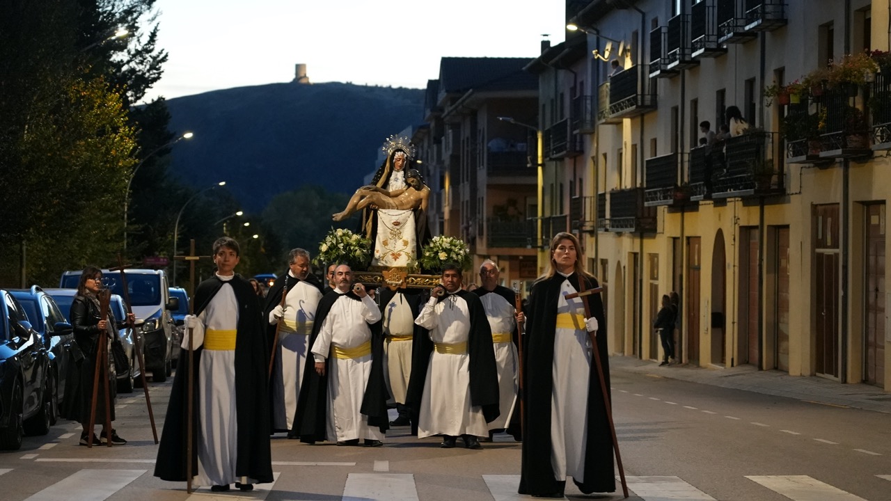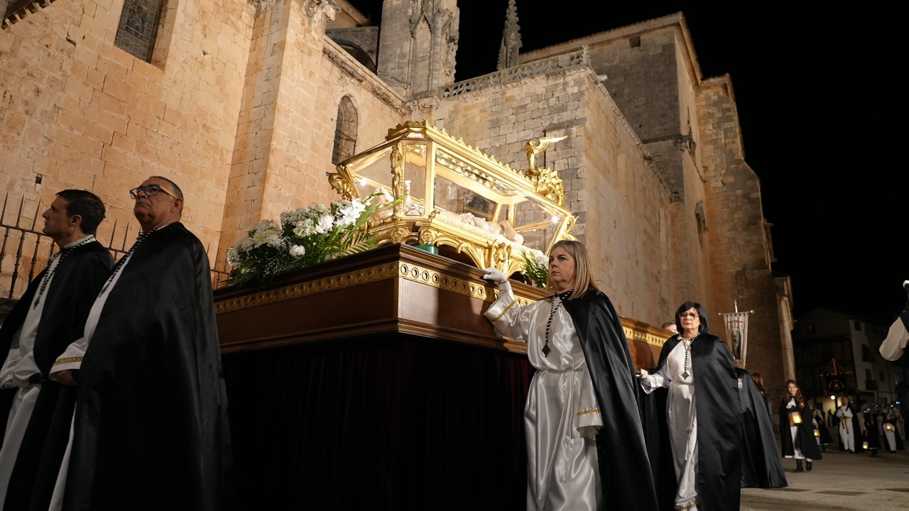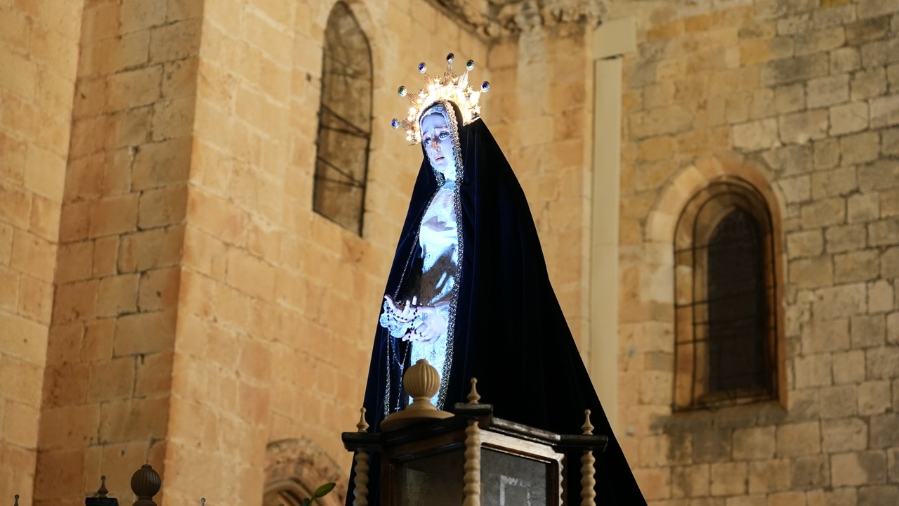 La actividad oficial ha comenzado a las seis de la tarde en la iglesia del Carmen con un acto penitencial necesario para ganar el Jubileo. Tras él, partía la procesión por las calles burgenses pasando por el Seminario, plaza Mayor y calle Mayor antes de desembocar en la plaza de la Catedral y entrar el templo por la puerta de San Miguel. El Administrador diocesano de Osma-Soria, Gabriel Ángel Rodríguez Millán, ha presidido una emotiva eucaristía en la que ha destacado el papel de las cofradías como custodias vivas de la fe y la esperanza en los pueblos de la diócesis. En su homilía, subrayaba que “la victoria del pueblo de Dios no depende de la fuerza, sino de la fe”, invitando a los cofrades a ser “oración en movimiento” y testigos alegres del Evangelio en medio del mundo. El Administrador alentó a redescubrir la esencia del Evangelio, a perseverar en la oración y a vivir con confianza y esperanza, recordando que “Cristo no vino a buscar perfectos, sino a levantar al que cayó y encender la llama en el que ya no creía”.